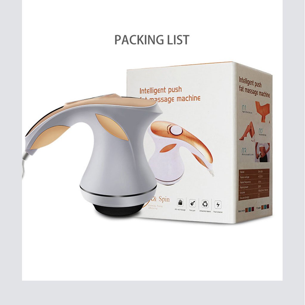جهاز تدليك متعدد الوظائف لحرق الدهونوظيفة مزدوجة: إذابة الدهون وشد الجلد + تدليك العضلات لتحسين الدورة الدموية.محرك قوي 3600 دورة/دقيقة: مع 5 أوضاع و6 مستويات مقاومة.رؤوس تدليك متعددة (8 قطع):رأس مسطح لتدليك الجسم بالكاملرأس موجي للأنسجة العميقةرأس زيوت أساسية للبطن والذراعينرأس تقشير للبشرة والقدمينرأس تايلاندي + 3 بكرات متنوعة للتجارب المختلفةسهل الاستخدام: شاشة LCD للتحكم ولمسة واحدة للتشغيل.تصميم آمن: غطاء شبكي للحماية من الشعر والأوساخ (لا يستخدم مع بعض الرؤوس مثل العجلة والتقشير).استخدام يومي بسيط: 15–30 دقيقة يوميًا كافية للحصول على نتائج دون تمارين شاقة.تنظيف سريع: يكفي مسح الجهاز بعد الاستخدام.