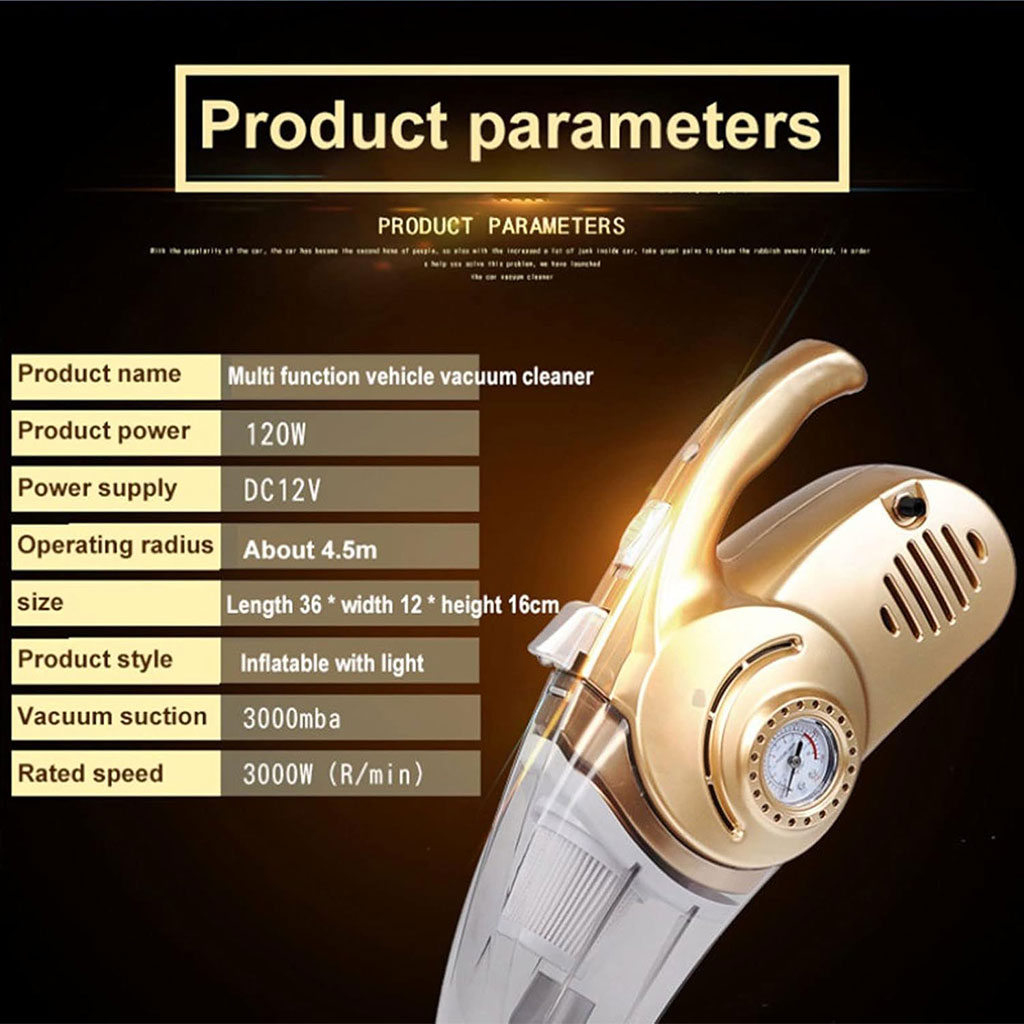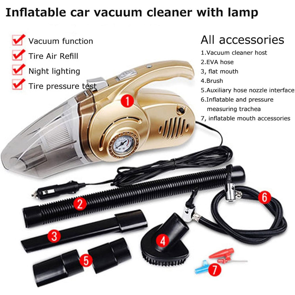 🌀 مكنسة وجهاز نفخ إطارات 2 في 1 للسيارة – 100 واط، 12 فولت ✅ أداء مزدوج – تنظيف شامل مع وظيفة نفخ الإطارات بدقة وسرعة في أقل من 5 دقائق. ✅ يدعم التنظيف الجاف والرطب – يمتص الغبار، السوائل، الشعر، الفتات وأكثر بسهولة. ✅ 3 رؤوس تنظيف متعددة – للوصول إلى جميع الزوايا والأماكن الضيقة في المنزل أو السيارة. ✅ إضاءة LED مدمجة – لتنظيف سهل في الأماكن المظلمة أو أثناء الليل. ✅ تشغيل هادئ – أقل من 80 ديسيبل، لا يزعج الأطفال أو الحيوانات الأليفة، ويوفر تجربة تنظيف مريحة.