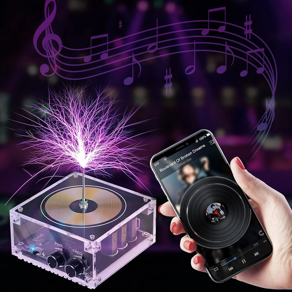 ملف تسلا بتقنية البلوتوث وتجربة البرق الصوتيتجربة علمية ممتعة: يولّد قوس برق مذهل بطول أكثر من 10 سم بتردد عالٍ، يمكن لمسه لتجربة إحساس فريد يشبه التدليك.تحكم موسيقي ذكي: اتصال بلوتوث لتزامن القوس مع الموسيقى.استخدامات متعددة: إشعال مصابيح النيون والأشعة فوق البنفسجية والورق الحراري (يشمل 10 أوراق حرارية + 6 مصابيح نيون + 1 مصباح UV).تعليمات أمان:لا تستخدمه بدون موسيقى لفترة طويلة.لا تضع أجسام ثقيلة على إبرة التفريغ.تجنب وضع LED مباشرة على السطح.أبعده عن المواد القابلة للاشتعال أو الانفجار.