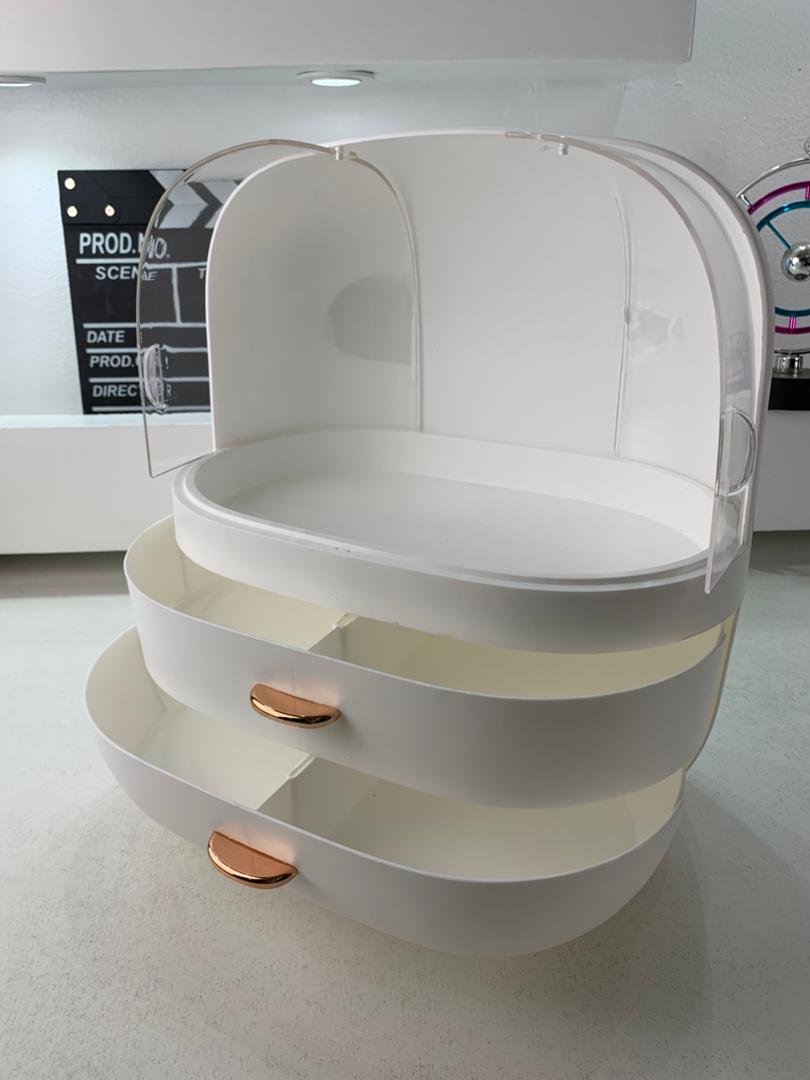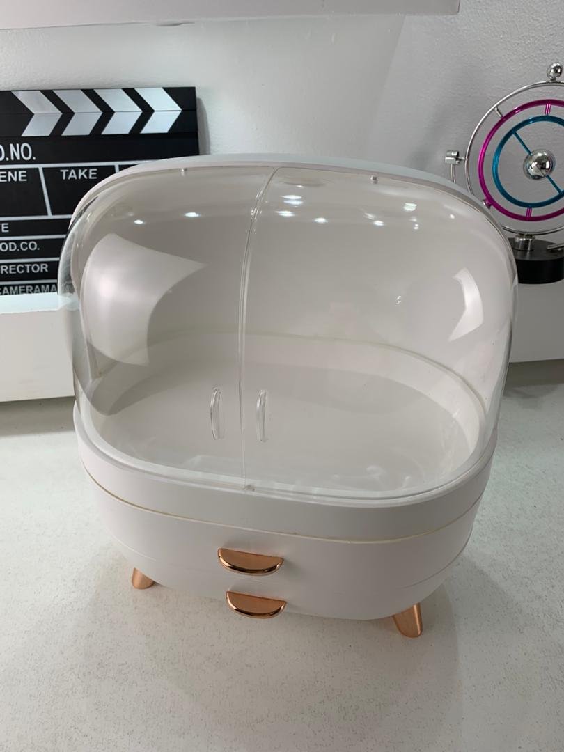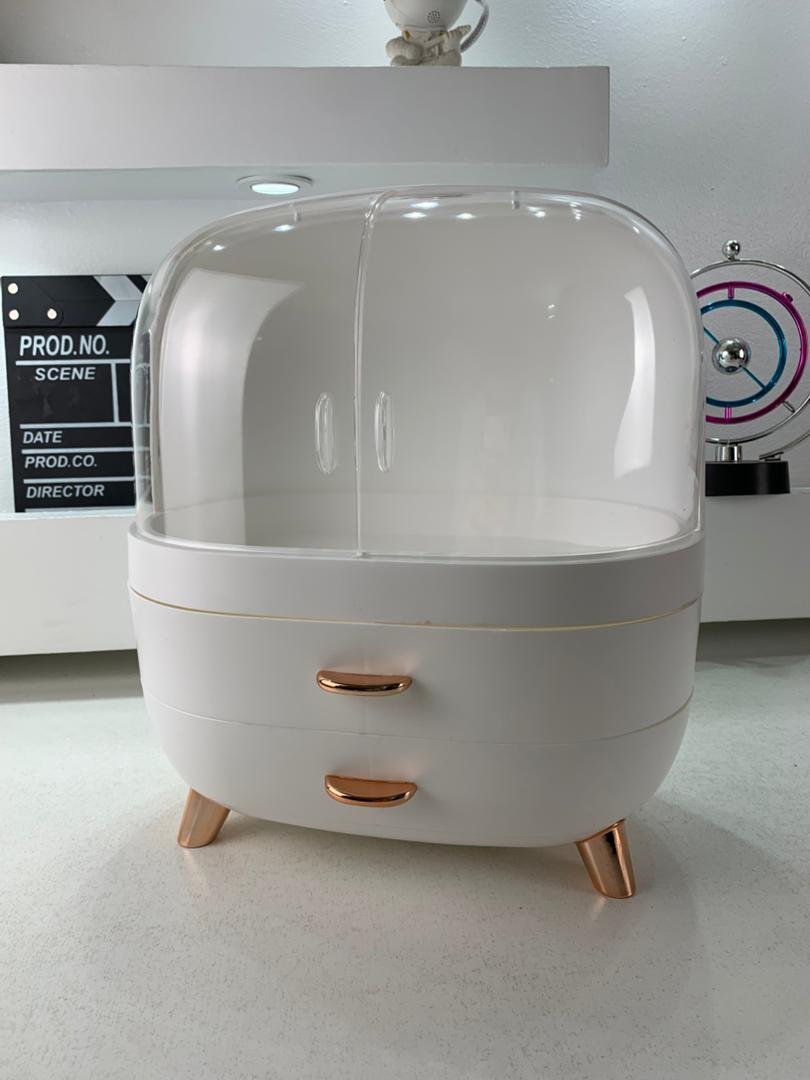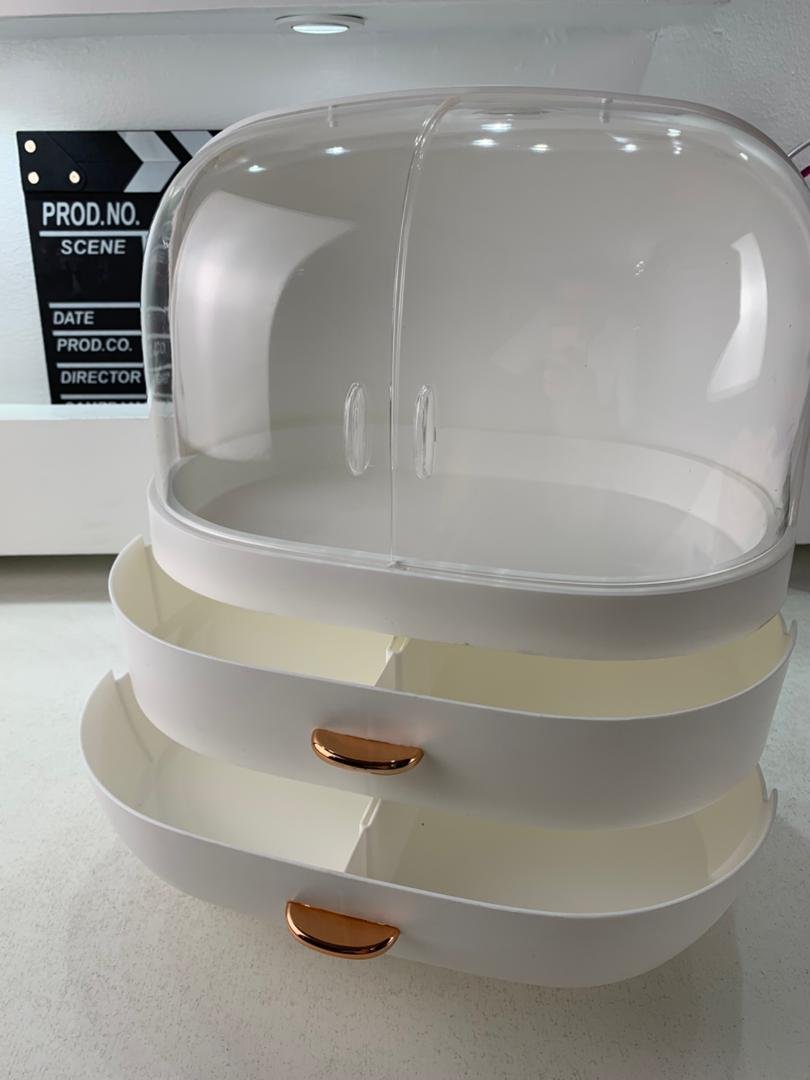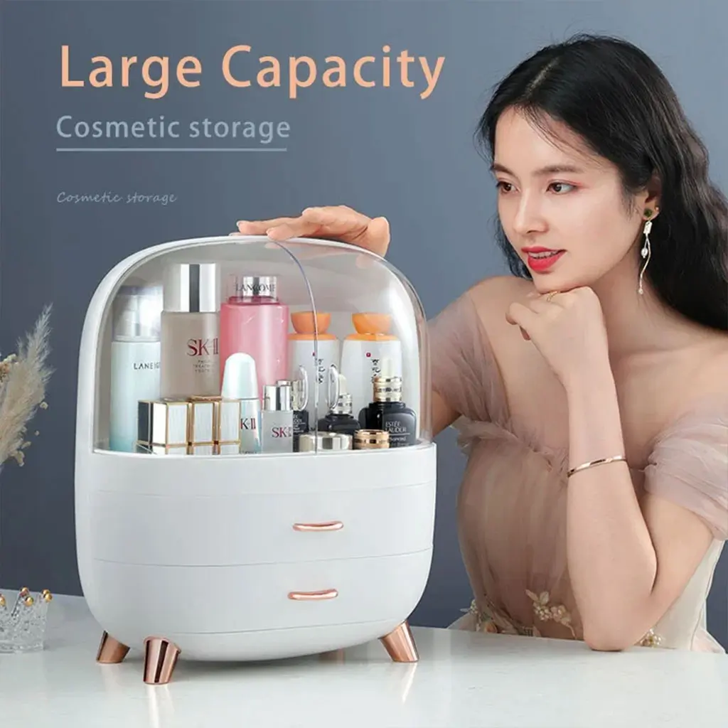 علبة تنظيم مستحضرات التجميل بغطاء أنيقتصميم فاخر وعصري: مصنوعة من بلاستيك ABS وPS آمنين وغير سامّين، مقاومة للخدوش والصدمات.سعة كبيرة: تخزّن الزيوت والكريمات والعطور وأدوات المكياج، وتوفّر حتى %70 من المساحة.مقاومة للغبار والماء: الغطاء الشفاف المزدوج يحافظ على نظافة وحماية المستحضرات، وسهل التنظيف.أبواب مغناطيسية شفافة: تتيح رؤية المحتوى بسهولة، مع مقابض معدنية وأقدام مضادة للانزلاق.هدية مثالية: مناسبة كمنظّم لمستحضرات التجميل في غرفة النوم أو الحمام أو طاولة الزينة، وتعتبر هدية مثالية للأصدقاء والعائلة في المناسبات مثل الأعياد وأعياد الميلاد.