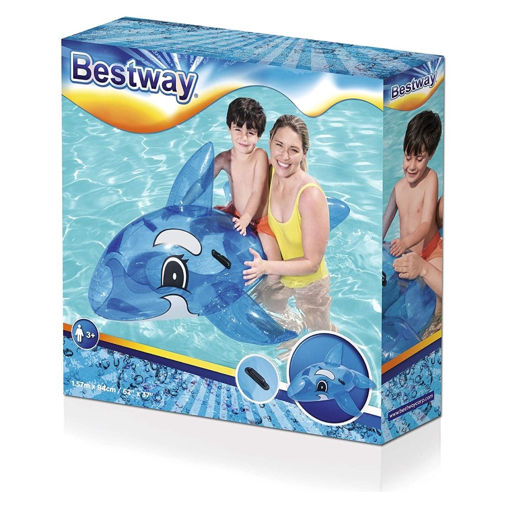 عوامة دولفين للأطفال من Bestwayأداة ضرورية في المسبح أو على الشاطئ لتعليم أساسيات السباحة.تصميم لطيف على شكل دولفين مزود بمقابض مريحة لليدين.مصنوعة من فينيل عالي الجودة يدوم طويلاً.ألوان زاهية تناسب الأولاد والبنات.قابلة للنفخ في دقائق باستخدام مضخة هواء للاستمتاع لساعات.الأبعاد: 157 × 94 سم