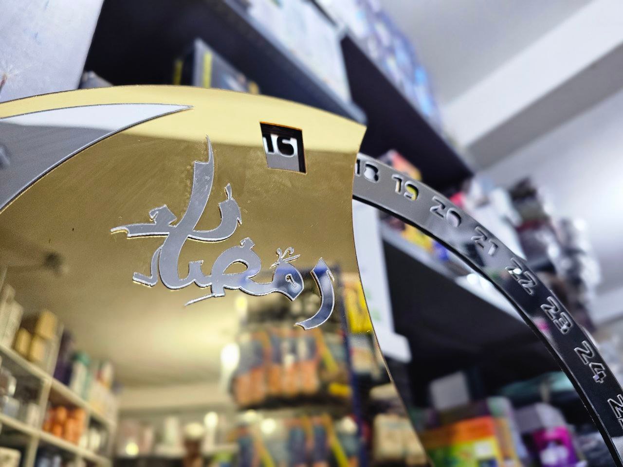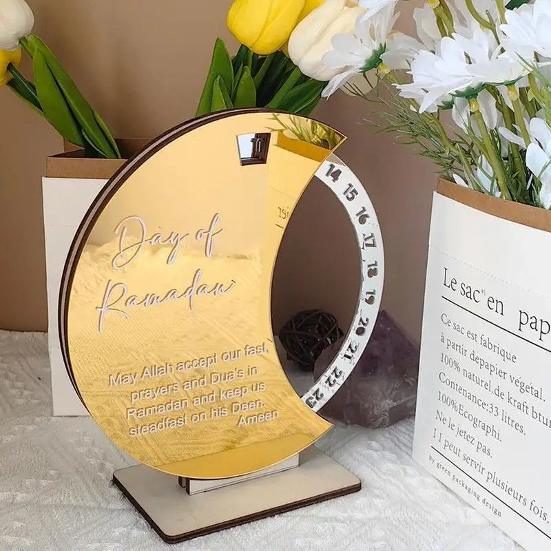 Calendrier rotatif pour compte à rebours du Ramadan , En acrylique effet miroir Grand Format ديكور رزنامة شهر رمضان حجم كبير ذهبي