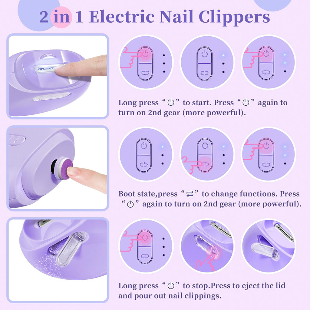 قصّافة ومبرد أظافر كهربائي 2 في 1العناية المثالية بالأظافر بسهولة، أمان، ودقة أينما كنت.✨ وظيفة مزدوجة لنتائج احترافيةجهاز عملي يجمع بين:قص دقيق للأظافربرد ناعم وآمنيأتي مع:7 رؤوس مبرد قابلة للتبديل2 رؤوس مخصصة للعناية بالأظافرمثالي للعناية اليومية في المنزل أو أثناء السفر.💡 أمان أعلى بفضل إضاءة LEDمزود بإضاءة LED مدمجة تمنحك:رؤية واضحة أثناء القصأمان أكبر خاصة للأطفالدقة مثالية حتى في الإضاءة الضعيفةخيار مثالي للآباء ولكل من يبحث عن عناية آمنة.🎛️ تحكم سهل وتصميم مريحدوران في الاتجاهينسرعتان قابلتان للتعديلأزرار تحكم بسيطة وسهلةمحرك هادئ جدًا بدون إزعاجمناسب للأطفال، الكبار، وكبار السن، ويمنح تجربة مريحة بدون توتر.🧼 تصميم نظيف وعملي بدون فوضىحاوية مدمجة لتجميع بقايا الأظافرنظام غطاء مزدوج لحماية الجهاز أثناء التخزينتصميم مضاد للتناثر لضمان نظافة وصحة الاستخدامعناية نظيفة ومنظمة في كل مرة.✈️ مثالي للسفر والتنقلخفيف الوزنلاسلكيتصميم مدمج وسهل الحملبطارية قابلة للشحن عبر USBيمكنك شحنه في أي مكان، مما يجعله مثاليًا للسفر، العطل، ورحلات العمل.جهاز واحد… راحة أكبر، أمان أعلى، وعناية احترافية بأظافرك في أي وقت 💅