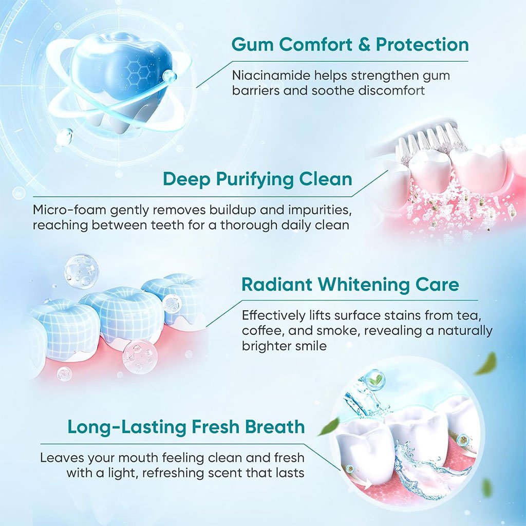 🦷 معجون أسنان Bodyaccel للتبييض والعناية الشاملة بالفم✨ تنظيف لطيف وتبييض تدريجيتمت صياغة معجون Bodyaccel بجزيئات تلميع دقيقة مع مستخلص النياسيناميد، ليمنحك ابتسامة أكثر إشراقًا وصحة مع الاستعمال المنتظم. ⚠️ نتائج التبييض تدريجية وقد تختلف حسب عادات العناية بالفم وتكرار الاستخدام.🌿 نفس منعش طوال اليوممُعزز بمستخلصات النعناع الطبيعي، يساعد على تقليل الروائح غير المرغوبة ويمنح إحساسًا دائمًا بالنظافة والانتعاش، ما يجعله مثاليًا للاستخدام اليومي.🍃 عناية طبيعية ولطيفةتركيبة تعتمد على مكونات طبيعية مختارة بعناية مثل:الزيلتولمستخلص Chondrus Crispusالسيليكا المائيةتوفر تنظيفًا فعّالًا دون إضرار بالأسنان أو اللثة، مع دعم صحة الفم بشكل عام.🚫 تركيبة خالية من الفلورايدمعجون أسنان بدون فلورايد، يساهم في حماية المينا ودعم الوقاية من التسوس، ومناسب لجميع الأعمار، خاصةً للأشخاص الحساسين للفلورايد.💪 عناية متكاملة باللثةيخفف حساسية الأسنانيقوي اللثة الضعيفةيساعد على الحد من النزيف🌸 مع نكهة منعشة تجمع بين الخوخ وزهر الكرز لانتعاش لطيف يدوم.⚖️ الوزن الصافي100 غرام✅ اختيار مثالي لمن يبحث عن تبييض تدريجي، نفس منعش، وعناية طبيعية وآمنة بالفم ابتسامة صحية تبدأ بعناية يومية صحيحة 😁
