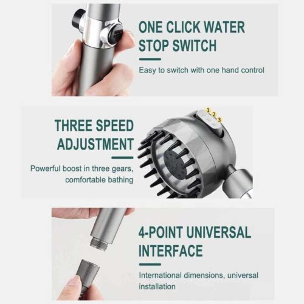 🚿 رأس دش متعدد الوظائف💧 3 أوضاع تدفق: مطر، تدليك، ومزيج لتجربة مخصصة.💆 تدليك مريح: يخفف التعب ويمنح إحساسًا بالاسترخاء.🌿 عناية بالبشرة: ترطيب وتجديد لملمس ناعم.🔝 ضغط ماء قوي: أداء ممتاز حتى مع ضغط منخفض.🔧 تركيب بسيط: يناسب المقاسات القياسية بدون الحاجة لأدوات.
