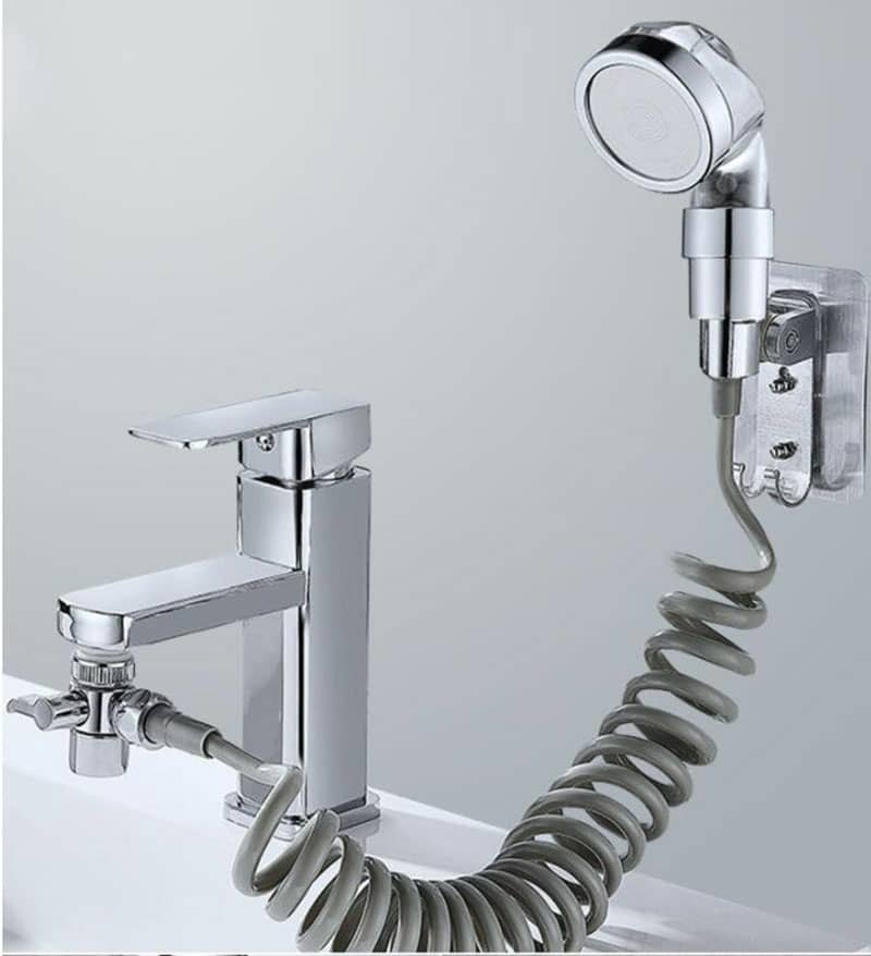 وصف المنتج – طقم دش محمول للحنفياتالمادة: بلاستيكاللون: فضييصلح للاستعمالات المتعددة: غسل الأطفال، الحيوانات الأليفة، الشعر، أحواض المطبخ أو التنظيف العام.مناسب للمسنين أو ذوي الصعوبات الجسدية: يسمح بغسل الشعر أثناء الجلوس بسهولة.سهل التركيب: يتصل بالحنفيات الموجودة (18–22 مم) ويوفر حلًا سريعًا دون أدوات إضافية.خرطوم طويل ومرن: يمكن ضبط زاوية الرشّ ولا يلتوي بسهولة.حامل مجاني: يمكن تركيبه على خزان المرحاض أو استخدامه كحامل جداري لرأس الدش.يتضمن شريط مانع للتسرب لضمان عدم تسرّب الماء.