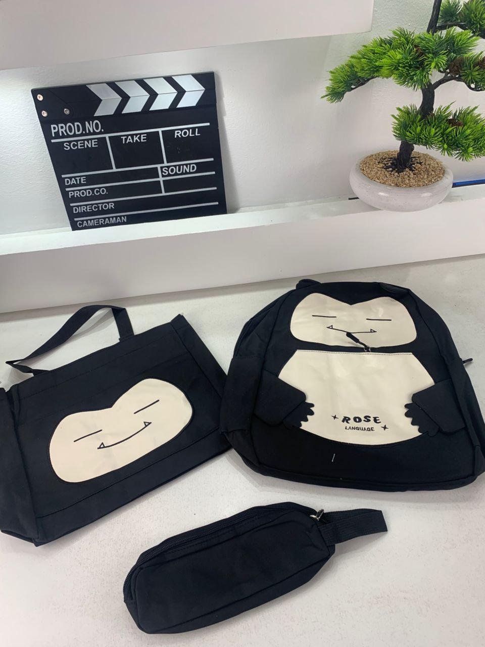 Ensemble de Sacs Snorlax 3Pcs Design Kawaii Noir – حقيبة مدرسية 3 قطع لون أسود