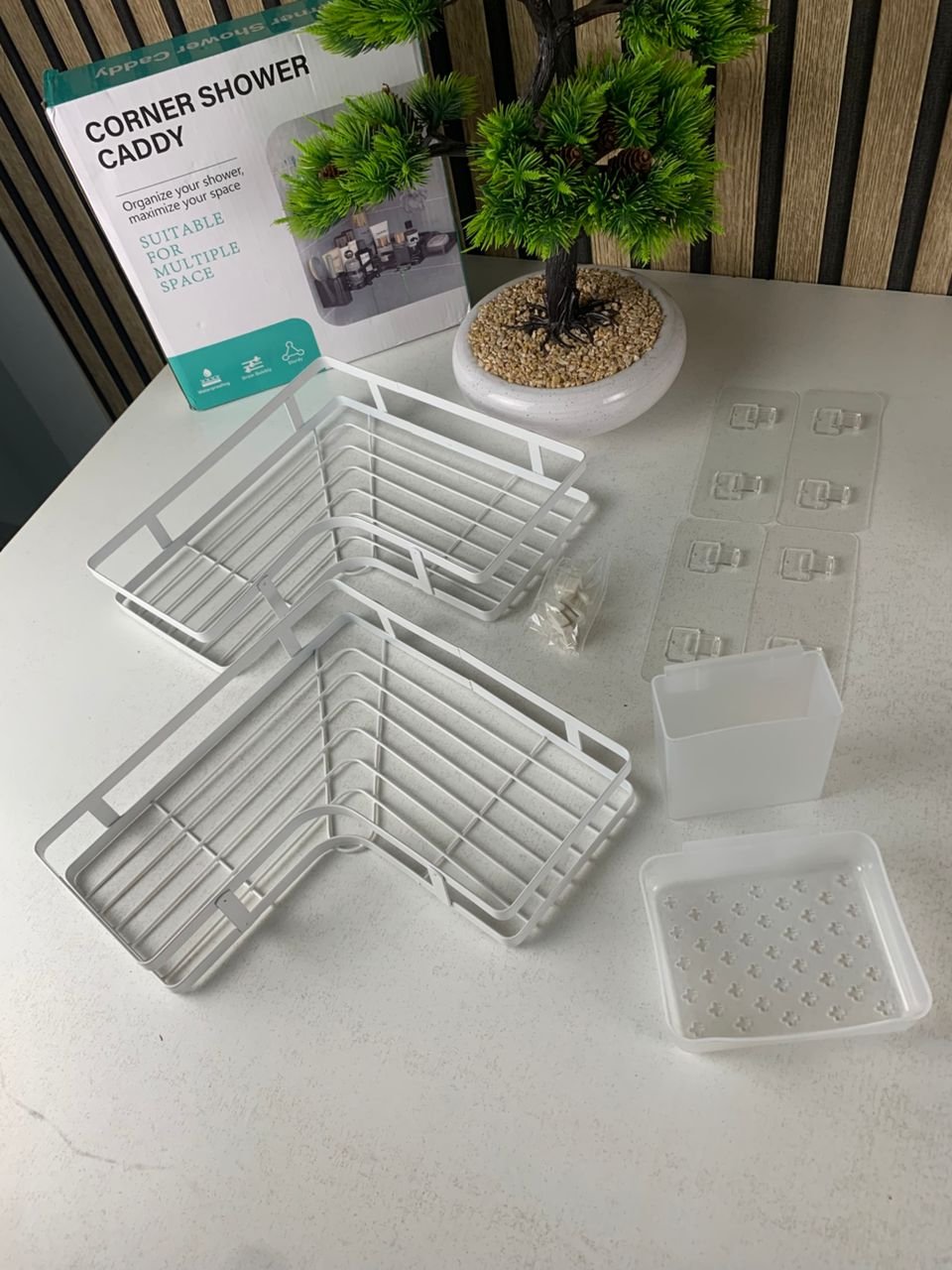 【🛁 مجموعة منظمات الدش】 مجموعة عملية واقتصادية من رفوف الحمام. تحتوي العبوة على: 2️⃣ منظم دش زاوية 🪥 1 حامل فرشاة أسنان 🧼 1 حامل صابون 🎁 ملحقات مرفقة: 4 خطافات قابلة للإزالة + 4 لواصق قوية مثالية لتنظيم مختلف الأغراض وجعل كل شيء في متناول يدك، مع حل جداري متكامل لتنظيم الحمام.【📐 توفير المساحة】 منظم الدش الزاوي يساعدك على استغلال الزوايا بشكل ذكي، ويحافظ على الحمام مرتبًا ونظيفًا. ✨ تصميم عصري وأنيق يناسب الحمام، ويمكن استخدامه أيضًا في المطبخ، غرفة النوم أو المرحاض. ⚠️ ملاحظة: مناسب فقط لزوايا الجدران بزاوية 90°.【💧 مقاوم للصدأ والماء】 مصنوع من فولاذ مقاوم للصدأ عالي الجودة مع معالجة خاصة لزيادة مقاومة: ✔️ الصدأ ✔️ تغير اللون ✔️ الخدوش تصميم شبكي مفتوح يسمح بتهوية جيدة وتصريف الماء، مما يمنع تراكم الأوساخ ويحافظ على نظافة الحمام.【🔧 تركيب سهل بدون حفر】 يتم التثبيت باستخدام لاصق قوي ومقاوم للماء، يتحمل أوزانًا عالية دون ترك أي أثر. 📌 طريقة التركيب: 1️⃣ تنظيف الجدار جيدًا 2️⃣ تثبيت اللاصق والانتظار 24 ساعة 3️⃣ تركيب الرف في مكانه ❌ بدون حفر ❌ بدون إتلاف الجدار ✔️ ثبات وأمان عالي【🏠 استخدامات متعددة】 مناسب للحمام، المطبخ، الشرفة، غرفة النوم وغيرها. 🧴 مثالي لتنظيم مستحضرات التجميل، أدوات الاستحمام، أو الأغراض اليومية. يساعدك على استغلال المساحة بشكل أفضل ويوفر سعة تخزين كبيرة مع مظهر أنيق.📏 الأبعاد: موضحة في الصور