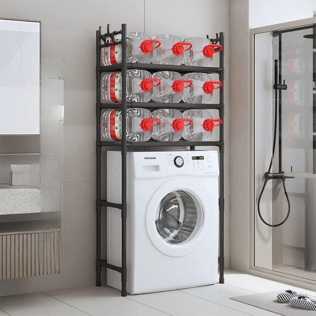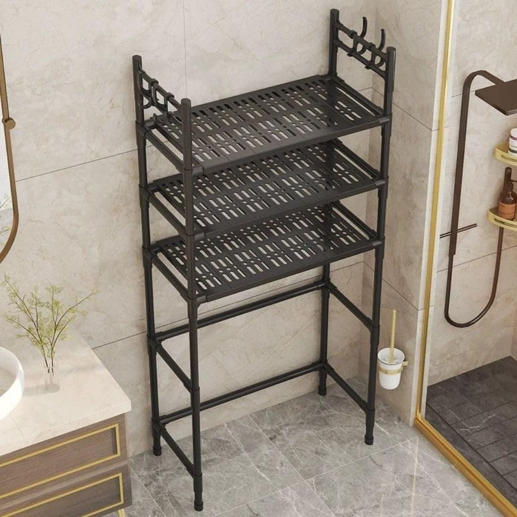 رف تخزين علوي بثلاثة مستويات – حل مثالي لتنظيم الحمامتحسين المساحة: تصميم رأسي لوضعه فوق المرحاض أو الغسالة.ثلاثة رفوف واسعة: لتنظيم أدوات الحمام أو التنظيف بسهولة.خطافات جانبية عملية: لتعليق المناشف أو الملحقات.بناء متين: خامات عالية الجودة لضمان الثبات والمتانة.تركيب سهل: مزود بكافة الأدوات والتعليمات الواضحة. حل عملي وأنيق للحفاظ على حمامك منظمًا ومرتبًا.