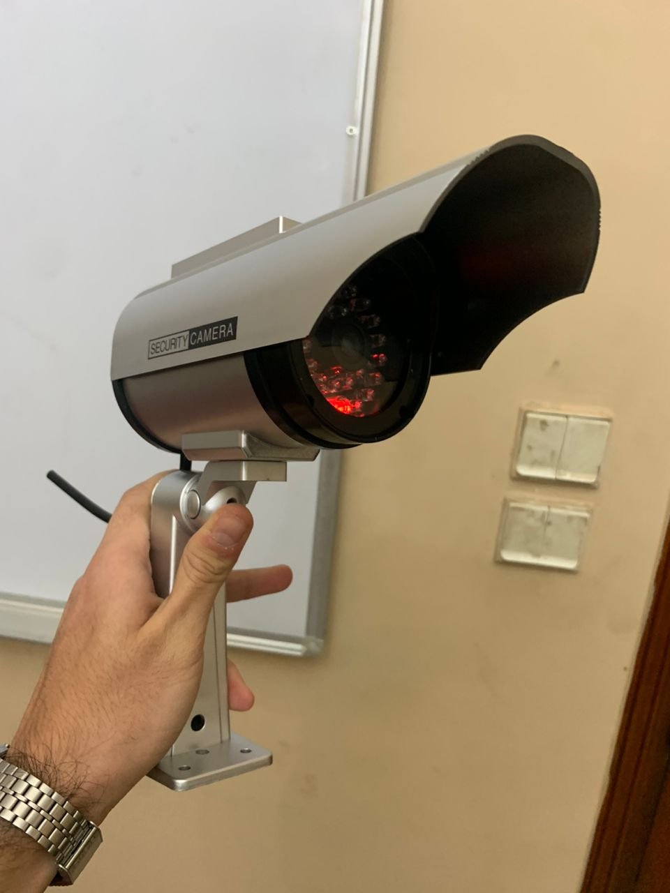 كاميرا مراقبة وهمية تعمل بالطاقة الشمسيةالتصميم:مصنوعة من مواد عالية الجودة ومتينة، تصميم مدمج وسهل التركيب، وتبدو ككاميرا مراقبة حقيقية.الاستخدام:كاميرا أمان وهمية تعمل بالطاقة الشمسية لتضليل اللصوص وردع السرقات والتخريب بتكلفة منخفضة مقارنة بالكاميرات الحقيقية.المميزات:حل اقتصادي لمشاكل الأمان مع مظهر احترافي.ضوء تنبيه مدمج، تصميم أنيق وعصري.استخدام داخلي وخارجي: مثالية لحماية المنازل، المتاجر، والمكاتب.قابلة للتثبيت في أماكن متنوعة: المنزل، المدرسة، المكتب، الحديقة.التشغيل:تحتاج إلى بطاريتين قابلة للشحن من نوع AA (غير مرفقة)، وتعمل البطاريات كدعم إضافي عند ضعف الإضاءة الشمسية.
