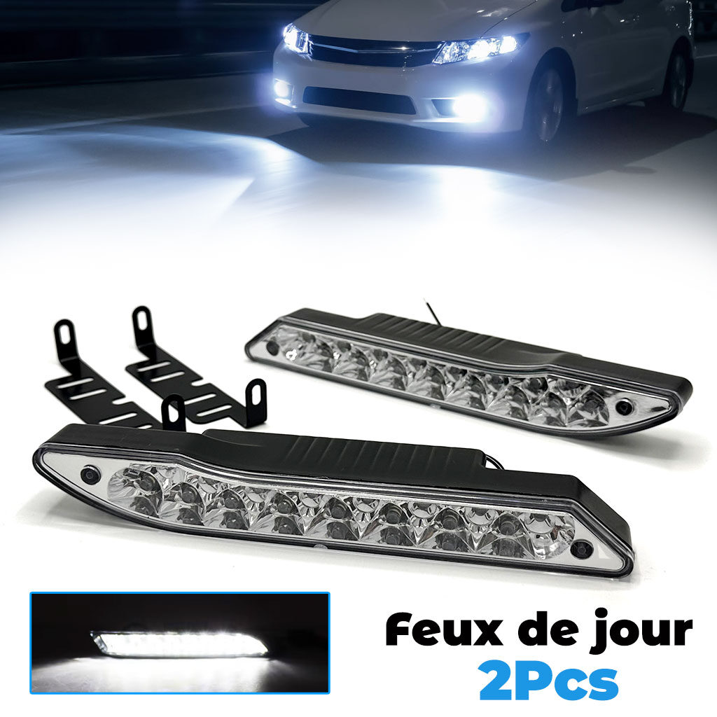 Couleur: coquille noireMatériau: PPC + alliage d’aluminiumType d’émetteur: LEDTotal des émetteurs: 6 piècesCouleur de la lumière: blancTension d’entrée: cc 12VPuissance: 5WFlux lumineux: 931lmTempérature de couleur: 6,000KType de connecteur: connexion de câbleIl se compose de trois lentilles de feux de croisement, trois lentilles de feux de route.Application: feu de jour; Feu de directionAméliorer la sécurité de conduiteÉviter les accidents de la routeRésistant à l’eauEmballage inclus:2 x lumières LED4 x vis et écrous2 x supports