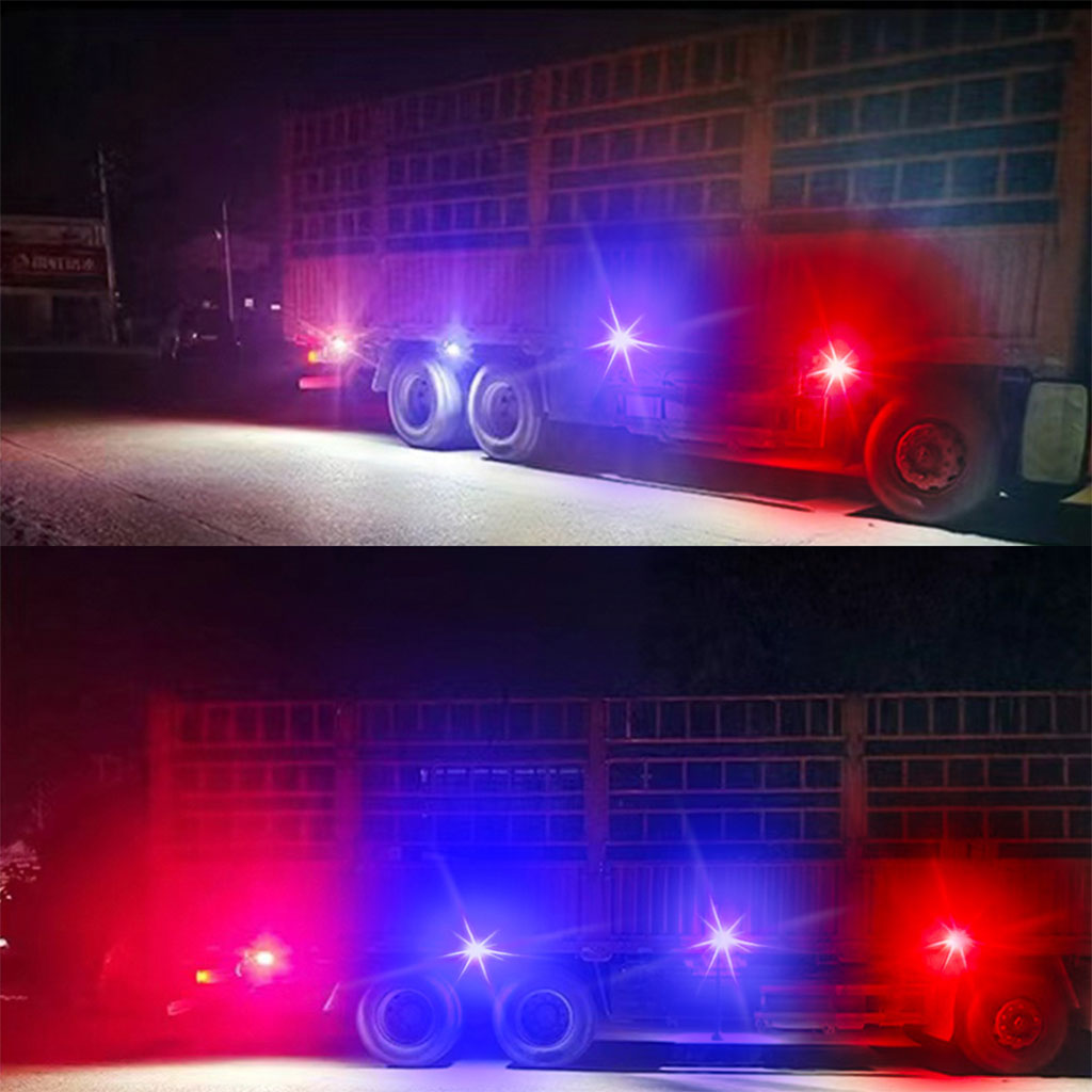 شريط ضوء LED ثنائي الألوان للمركبات نفس الكفاءة ولكن بتصميم من وحدتين ضوئيتين (أحمر وأزرق) للرؤية الليلية العالية والسلامة على الطرق.تركيب فوري وتشغيل متعدد الأوضاعهيكل قوي مناسب للاستخدام المكثفمثالي للمقطورات والشاحنات وسيارات الخدمة