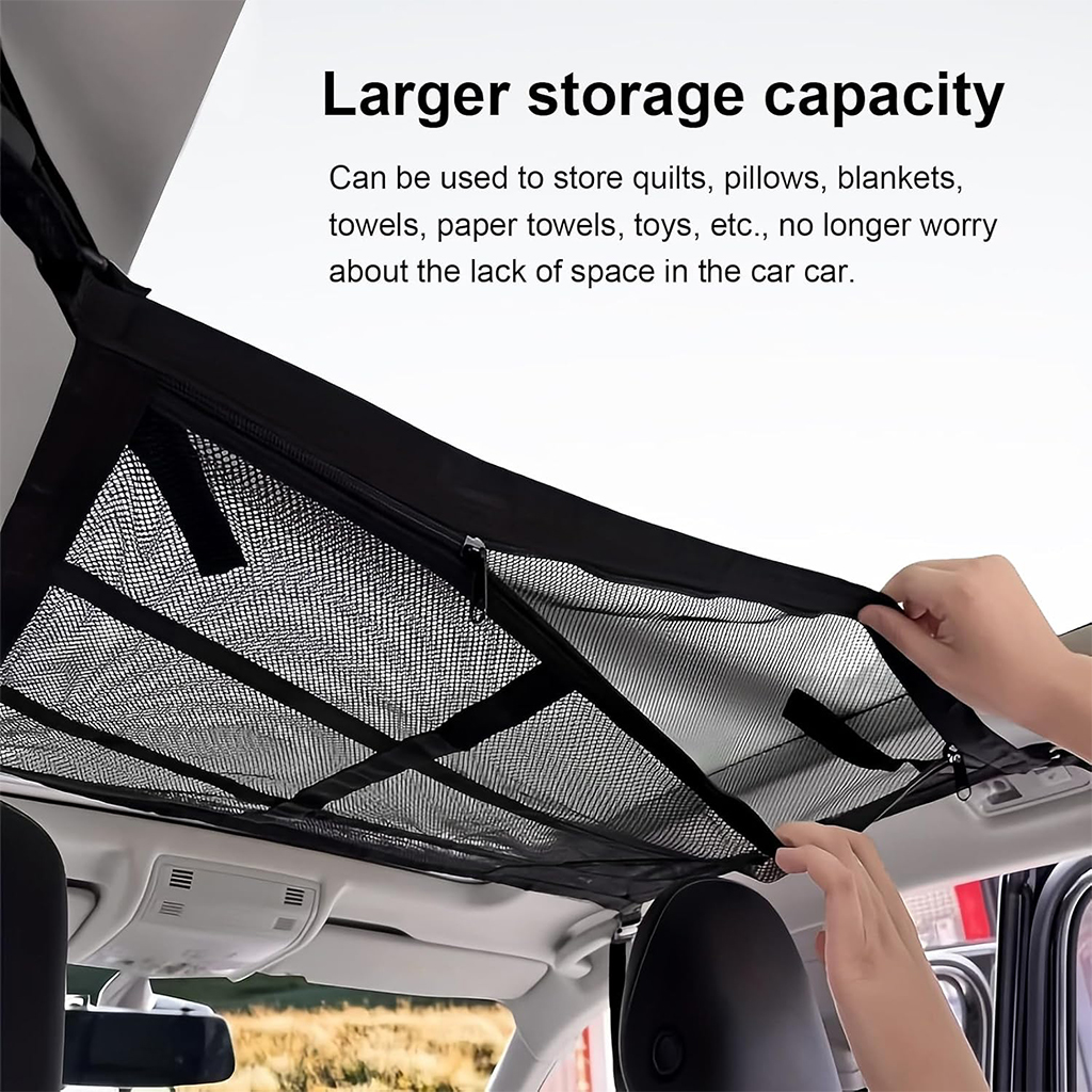 ▶ سعة كبيرة ◀شبكة التخزين على سقف السيارة تتيح لك تنظيم الملابس والألعاب المختلفة للأطفال بسهولة. وعند الذهاب في رحلة تخييم، يمكنها أيضًا تخزين الأشياء الكبيرة والخفيفة مثل الوسائد، البطانيات، أو المعاطف المنفوخة. تمنع الأشياء من التحرك أو السقوط أثناء القيادة، مما يجعلها متينة وآمنة.▶ توفير المساحة ◀يوجد الكثير من المساحة في سقف السيارة. عند تركيب حقيبة التخزين هذه على سقف السيارة، ستتمكن من وضع العديد من الأغراض الخفيفة وذات الأشكال الكبيرة أو غير المنتظمة، مما يوفر مساحة كبيرة داخل سيارتك.▶ استخدام واسع ◀منظّم السيارة مناسب لمعظم أنواع السيارات، ويمكن تركيبه على السيارات المزوّدة بأربع مقابض في السقف. كما يمكن تعديل حقيبة التخزين وفقًا لعرض السقف. ملاحظة: لا يُنصح باستخدامه إذا كان السقف منخفضًا جدًا. قد تكون هناك فروقات طفيفة في المقاس بسبب القياس اليدوي.▶ سهل التركيب ◀يأتي مزوّدًا بـ 4 مشابك تثبيت يمكن ربطها بسهولة بمقابض سقف السيارة، بالإضافة إلى أدوات شد لتثبيت حقيبة التخزين بإحكام. ما عليك سوى إمساك المشابك، شد الحزام، ليكون الشبك قويًا وآمنًا ولا يأخذ مساحة كبيرة.