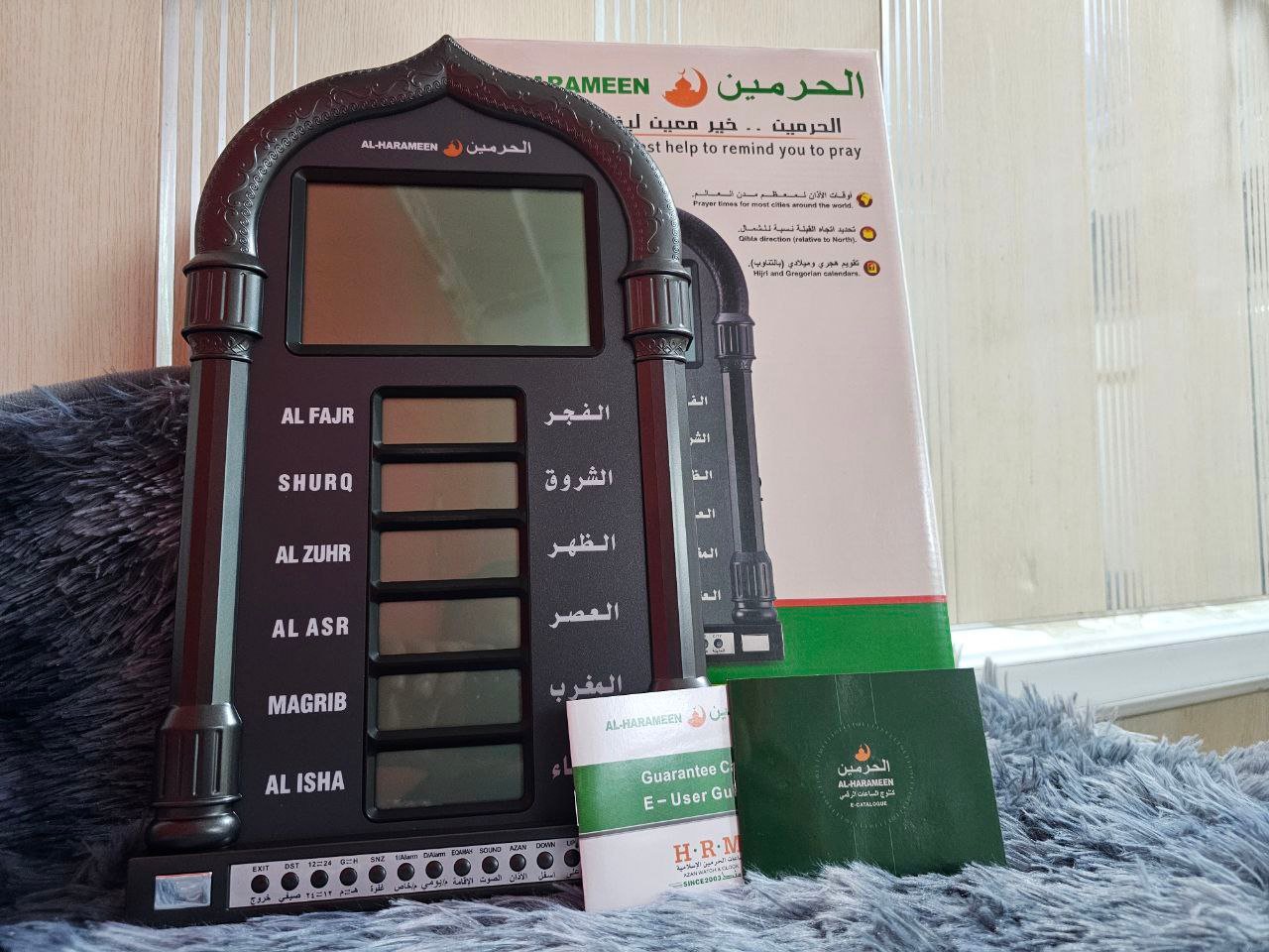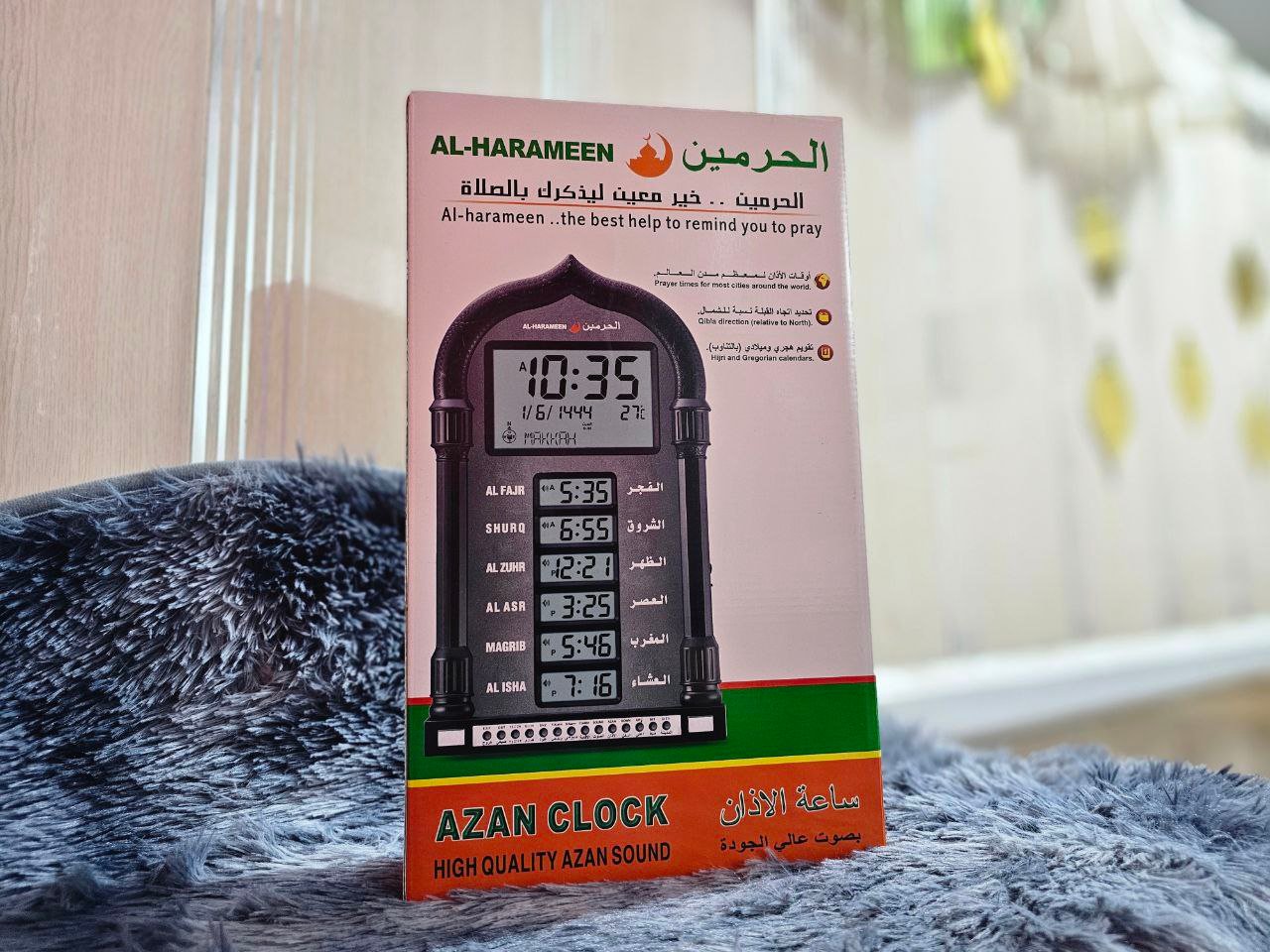 وصفأذان كامل لجميع الصلوات مع التحكم في مستوى الصوت.مواقيت الصلاة لمعظم مدن العالم.شاشة رقمية مع شاشة LCD لعرض وقت وتاريخ الأذان.لإعداد سهل، برمجة المدينة على مدار الساعةعن طريق رمز الهاتف الدولي.يتغير منبه الصلاة تلقائيًا حسب وقت الأذان.منبه يومي يمكن تعديله ليرن في أيام العمل فقط.اتجاه القبلة (نسبة إلى الشمال).التقويم الهجري والميلادي، مع عرض أيام الأسبوع.عرض الوقت خلال 12 ساعة (صباحًا/مساءً) أو 24 ساعة.مؤشر درجة الحرارة (مئوية أو فهرنهايت)خيار التوقيت الصيفي التلقائي.خيار الغفوة (كل 5 دقائق).مخرج الصوت (التوصيل مع مكبر الصوت)عرض اسم المدينة.الحجم: 23 × 39 سم تقريبًا.وزن العلبة: 865 جرام تقريبًا. https://www.youtube.com/watch?v=J1Ul1u00tAw | Numéro de modèle | Référence: HA-4028 | Nom du produit | Horloge Azan | Taille de l’horloge | 23x39x5.6cm | Style | Horloge de prière musulmane islamique Azan | Matériel | Plastique LED Numérique | Affichage | LED numérique | Batterie | Batterie 3xAA | Couleurs | Argent et or | Carton Taille | 52x42x43CM | | | | | | | Caractéristiques | ISLAMIQUE LED NUMÉRIQUE HORLOGE MURALE HA-4008 • Azan complet pour toutes les prières. • 1150 villes temps azan et temps du monde. • Peut programmer plus de 5000 villes dans le monde entier. • Direction Qibla (par rapport au nord). • Hijri et calendriers grégoriens. • Alarme Fajr, ajustée automatiquement tous les jours. • Alarme quotidienne (week-ends en option). • Option d’heure d’économie de lumière du jour. • Affichage de la température. • Commutateur de contrôle du volume. • Prise CC pour powerDaily. • Garantie de deux ans