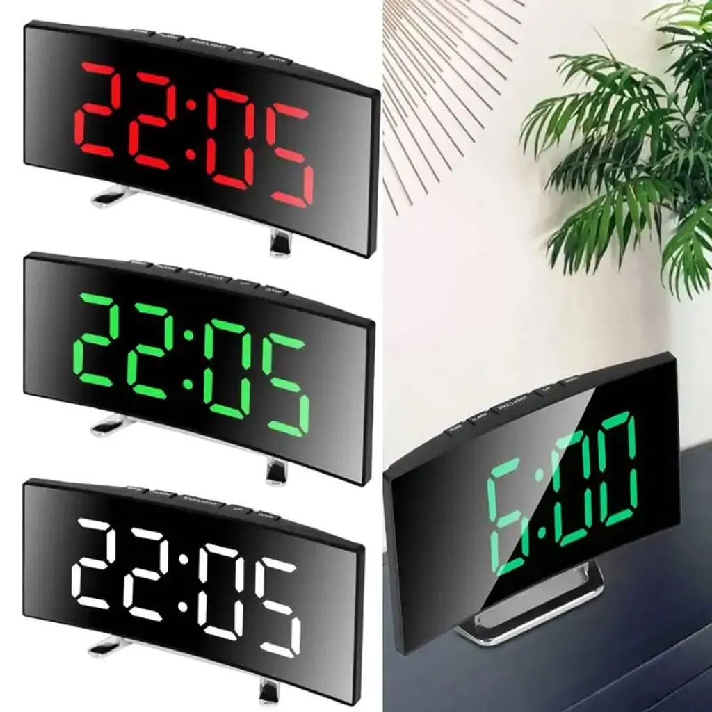 ساعة رقمية LED أنيقةالنوع: ساعة رقمية LEDالحجم: 17×9.5×4.2 سمالألوان: أبيض / أخضر / أحمر المواصفات:شاشة مرآة تعكس ما حولها وتضفي إحساسًا بالمساحة.شاشة منحنية لعرض واضح للوقت من عدة زوايا.ثلاثة أوضاع للتغذية: بطاريات AAA أو USB (البطاريات غير مشمولة). ميزة إضافية: تعرض درجة الحرارة مع تصميم عصري مناسب للمكتب أو غرفة النوم.
