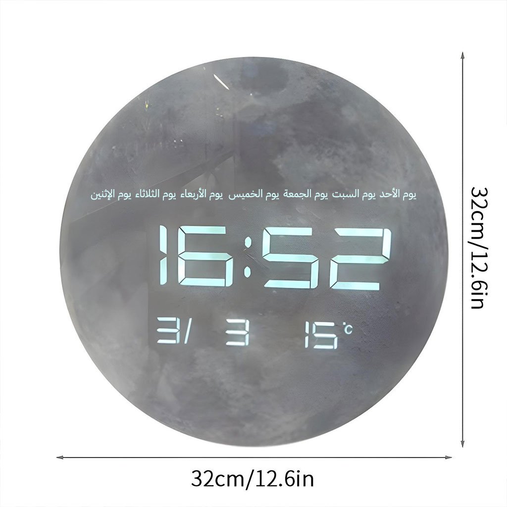 شاشة LED كبيرة: مزودة بشاشة 13 بوصة تعرض الوقت، التاريخ، ودرجة الحرارة بوضوح حتى من مسافة بعيدة. نظام 12/24 ساعة: يمكن الاختيار بين نظام الساعة 12 ساعة (AM/PM) أو 24 ساعة حسب الرغبة. تعديل تلقائي للإضاءة: تخفض الإضاءة تلقائيًا بين الساعة 22:00 و 06:59 لراحة العين أثناء الليل. عرض متعدد الوظائف: تعرض الوقت، درجة الحرارة، والتقويم في آن واحد. تركيب مرن: يمكن تعليقها على الحائط أو وضعها على المكتب، مناسبة للمنزل أو المكتب أو غرفة النوم. أضف لمسة عصرية وعملية لمساحتك مع هذه الساعة الجدارية الأنيقة.
