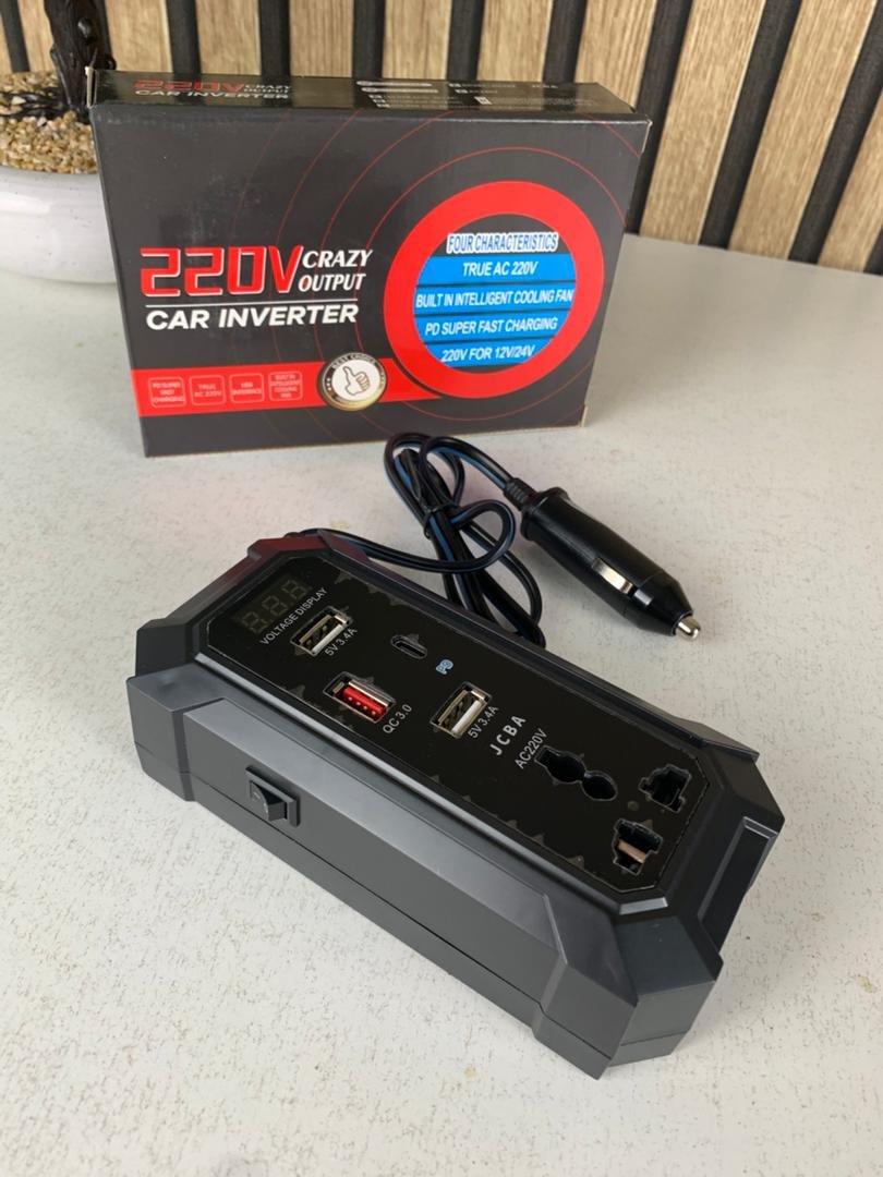 ⚡🚗 محــوِّل الســيارة 12V/24V إلى 220V بشحن سريع QC3.0 + PDحلّ مثالي للشحن وتشغيل أجهزتك داخل السيارة بكل سهولة وأمان ! يحوّل طاقة السيارة من 12V أو 24V إلى 220V مع دعم الشحن السريع QC3.0 وPD لتوفير طاقة قوية وثابتة لكل أجهزتك الإلكترونية.🔧 المواصفات التقنية🔌 اسم المنتج: محول سيارة 12V/24V إلى 220V⚡ جهد الإدخال: 12V / 24V🔋 جهد الإخراج: 220V AC⚡ شحن سريع QC3.0 (USB-A): بقدرة 20W🔌 شحن سريع PD (USB-C): بقدرة 30W🔌 منفذ USB-A: 5V = 3.1A ×2🔥 الطول الإجمالي لسلك ولاعة السيارة: حوالي 70 سم🛡️ أنواع الحماية: حماية متعددة (سخونة – شورت – زيادة أو انخفاض الجهد – تحميل زائد)🌀 نظام التبريد: مروحة ذكية📏 الأبعاد: 15.7 × 7.5 × 4.3 سم📟 العرض: شاشة ذكية رقمية✨ المميزات1️⃣ تقنية شحن سريع متطورة يدعم QC3.0 وPD ليمنحك شحناً سريعاً بقوة:🔹 20W عبر USB-A🔹 30W عبر USB-C يشحن هاتفك وأجهزتك في وقت قياسي ويوفّر عليك الوقت أثناء السفر.2️⃣ شاشة عرض ذكية شاشة رقمية تعرض الجهد – الحالة – الأداء لحظة بلحظة، مما يعطيك تحكمًا كاملاً واستعمالًا أكثر أماناً واحترافية.3️⃣ شحن عدة أجهزة في نفس الوقت يحتوي على 5 منافذ توسعة لتشغيل وشحن: 📱 الهواتف – 💻 الحواسيب – 🔦 الأجهزة الصغيرة – 📟 الأجهزة الإلكترونية مثالي للعائلات، الرحلات، والكرفانات.4️⃣ متوافق مع جميع السيارات يعمل على 12V و24V، مما يجعله مناسباً: 🚗 للسيارات – 🚚 للشاحنات – 🚌 للحافلات – 🚐 للكرفانات مرونة كاملة مهما كان نوع المركبة.5️⃣ أعلى درجات الأمان نظام حماية شامل ضد:ارتفاع الجهدانخفاض الجهدالحرارةالشورتالتحميل الزائد مع مروحة ذكية تمنع السخونة وتحافظ على أداء مستقر وطويل الأمد.📦 محتويات العلبة1× محول سيارة 12V/24V إلى 220V1× دليل الاستعمال