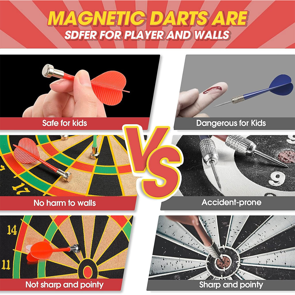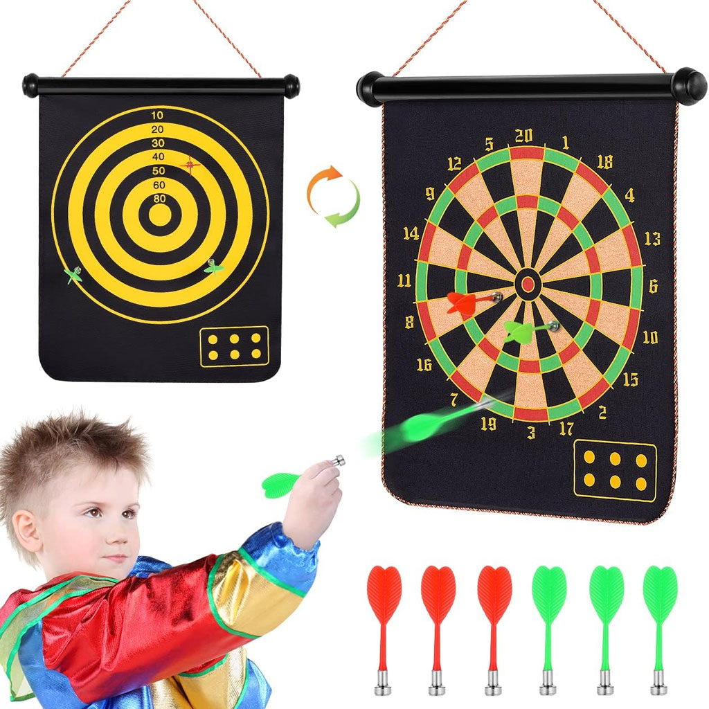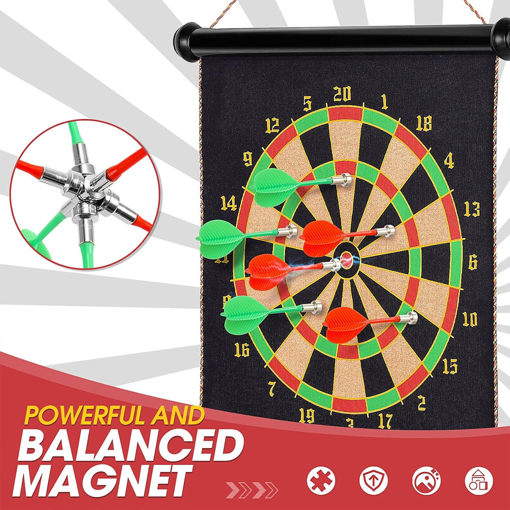 لعبة السهام المغناطيسية مزدوجة الوجه ✔ لعبة سهام مغناطيسية قابلة للفّ مناسبة للأطفال والبالغين، تحتوي على لوحة 15 بوصة و6 سهام (3 خضراء و3 حمراء). ✔ جانبها الأول لوحة سهام قياسية، والجانب الآخر لوحة أهداف للمرح واللعب المتنوع. ✔ تصميم آمن: رؤوس السهام مغناطيسية مسطحة لتجنّب الإصابات وحماية الجدران. ✔ تساعد الأطفال على تنمية قوة الذراع وتحسين التناسق الحركي. ✔ تبعد الأطفال عن الشاشات الإلكترونية وتحسّن مهارات العين واليد بطريقة ممتعة. ✔ مناسبة لجميع المستويات، سهلة اللعب، مثالية للمنازل والمكاتب والحفلات والمراكز المجتمعية. ✔ هدية رائعة وآمنة للأطفال مع إمكانيّة اللعب العائلي لتعزيز العلاقة بين الوالدين والأبناء.