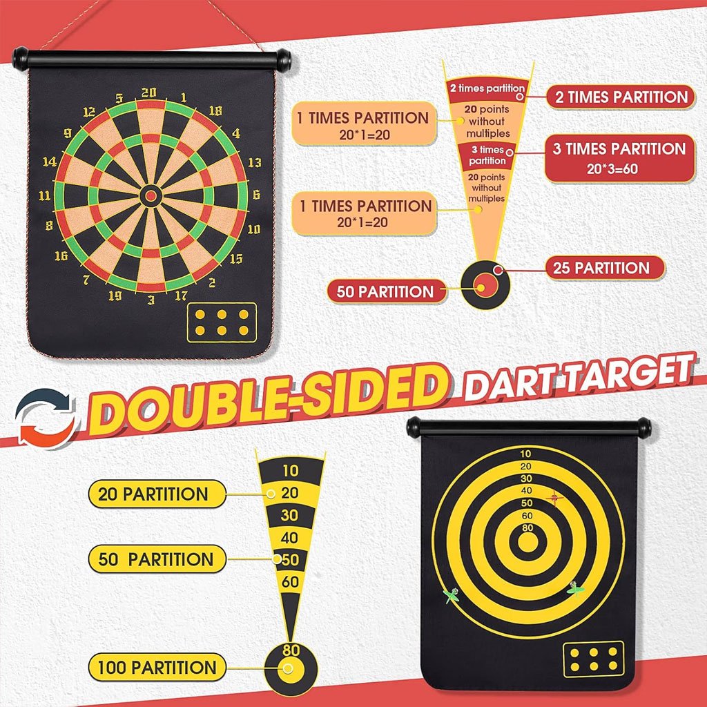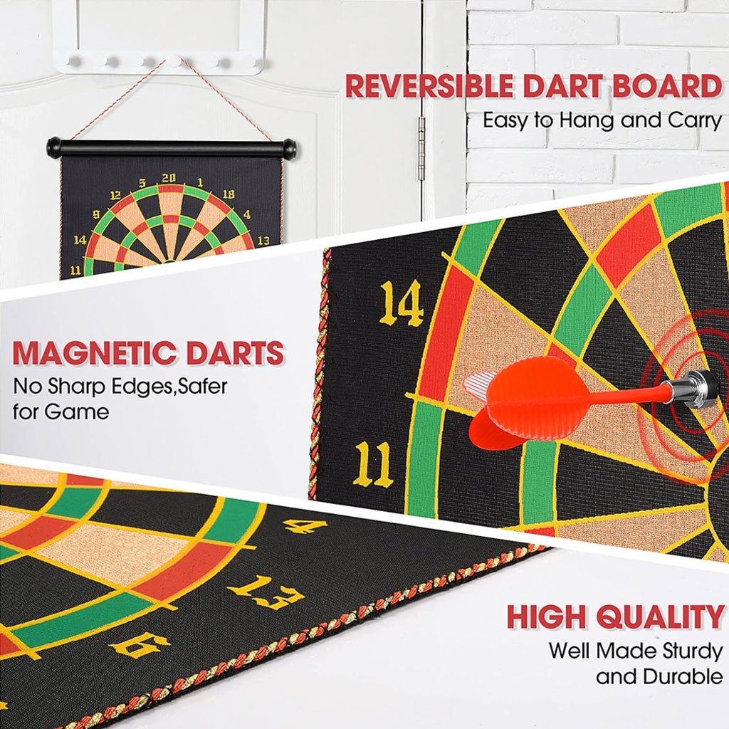 لعبة السهام المغناطيسية مزدوجة الوجه ✔ لعبة سهام مغناطيسية قابلة للفّ مناسبة للأطفال والبالغين، تحتوي على لوحة 15 بوصة و6 سهام (3 خضراء و3 حمراء). ✔ جانبها الأول لوحة سهام قياسية، والجانب الآخر لوحة أهداف للمرح واللعب المتنوع. ✔ تصميم آمن: رؤوس السهام مغناطيسية مسطحة لتجنّب الإصابات وحماية الجدران. ✔ تساعد الأطفال على تنمية قوة الذراع وتحسين التناسق الحركي. ✔ تبعد الأطفال عن الشاشات الإلكترونية وتحسّن مهارات العين واليد بطريقة ممتعة. ✔ مناسبة لجميع المستويات، سهلة اللعب، مثالية للمنازل والمكاتب والحفلات والمراكز المجتمعية. ✔ هدية رائعة وآمنة للأطفال مع إمكانيّة اللعب العائلي لتعزيز العلاقة بين الوالدين والأبناء.