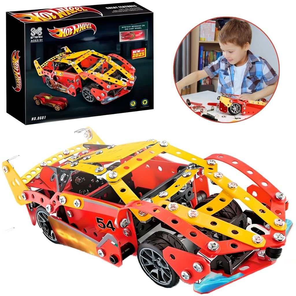عدد القطع : يحتوي هذا الطقم على 372 قطعة معدنية، لتجربة تركيب ممتعة وتفصيلية.الأبعاد : أبعاد العبوة 35 × 27 × 6,5 سم، بوزن تقريبي 0,5 كغ.العمر الموصى به : مناسب للأطفال من عمر 8 سنوات فما فوق، وللكبار المحبين للهوايات الميكانيكية. العلامة التجارية : لا توجد علامة تجارية محددة لهذا المنتج.السلسلة : ينتمي إلى سلسلة “Hot Wheel”. طقم البناء المعدني “سيارة رياضية” 8601 مثالي لعشاق النماذج الميكانيكية والأطفال الراغبين في تنمية مهاراتهم في التركيب والهندسة. يمنح تجربة تعليمية وإبداعية محفزة مع تطوير المهارة اليدوية والدقة.