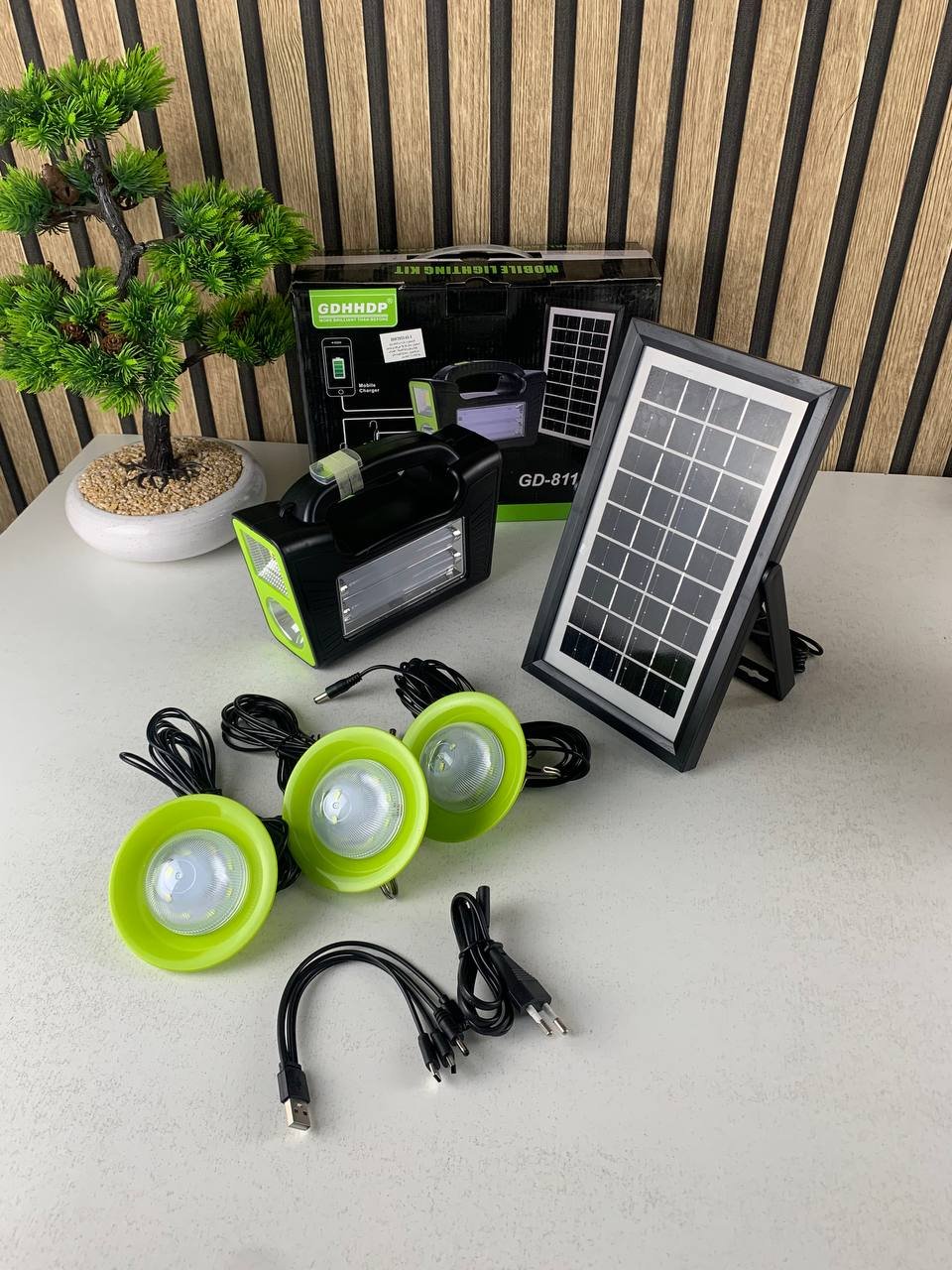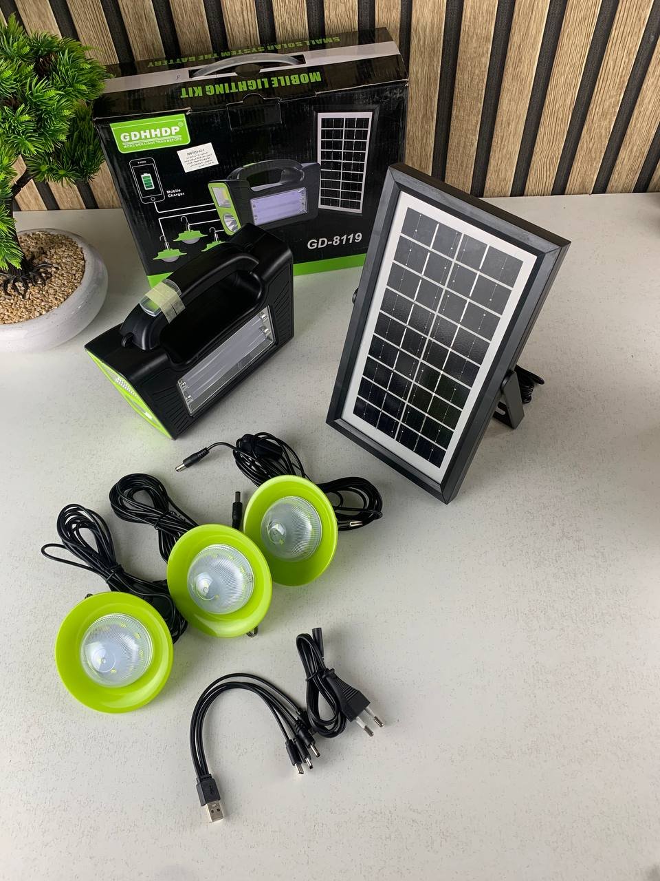 🔋 محطة طاقة شمسية محمولة مع 3 مصابيح LED + شحن USBحل مثالي للبيت، الرحلات، التخييم، الأعطال الكهربائية وحتى الاستعمال اليومي. مزودة بلوح شمسي عالي الأداء وبطارية قوية تعطي إضاءة وشحن بدون كهرباء ⚡☀🌞 شحن بالطاقة الشمسيةمزودة بلوح شمسي عالي الكفاءة يشحن المحطة بسهولة باستعمال ضوء الشمس. حل اقتصادي وإيكولوجي بلا فاتورة كهرباء ولا شاحن.💡 ثلاث مصابيح LED قويةتجي مع 3 لمبات LED قابلة للفصل والتثبيت حسب الحاجة، تعطي إضاءة قوية وواضحة في الليل، للمنزل أو الخارج.🔋 بطارية قوية تدوم طويلاًبطارية ليثيوم مدمجة بسعة عالية تكفي لاستعمال الإضاءة أو شحن الأجهزة عدة مرات بشحنة واحدة.🔌 منفذ USB لشحن الهاتفتقدر تستعملها كباور بنك وتشحن الهاتف، التابلت أو أي جهاز عبر USB — مثالية في الطوارئ أو السفر.📦 سهلة الاستعمال والتنقلتصميم خفيف مع مقبض حمل ومفاتيح تشغيل بسيطة، مناسبة للاستعمال في أي مكان بدون تعقيد.🌧 متينة ومقاومة للطقسمصنوعة بمواد متينة ومقاومة للصدمات والماء بمعيار IP65، مناسبة للداخل والخارج.📌 المواصفات التقنيةالخاصيةالتفاصيلنوع المنتج | محطة شحن بالطاقة الشمسيةنوع اللوح | أحادي بلوري Monocristallinالقوة القصوى | 3Wالتيار | 0.79Aالبطارية | ليثيوم عالية السعةمخارج الإضاءة | 3 مصابيح LEDمخرج USB | نعمالأبعاد | 22.5 × 13.5 × 1.8 سمالطول الكابل | 2-3 مترالوزن | 400غنطاق الحرارة | -10°C إلى +80°Cالحماية | IP65 ضد الماء والصدماتنوع المنفذ | USB + مدخل دائري 5mm📦 محتوى العلبة1× محطة شمسية3× مصابيح LED1× كابل توصيلدليل الاستعمال