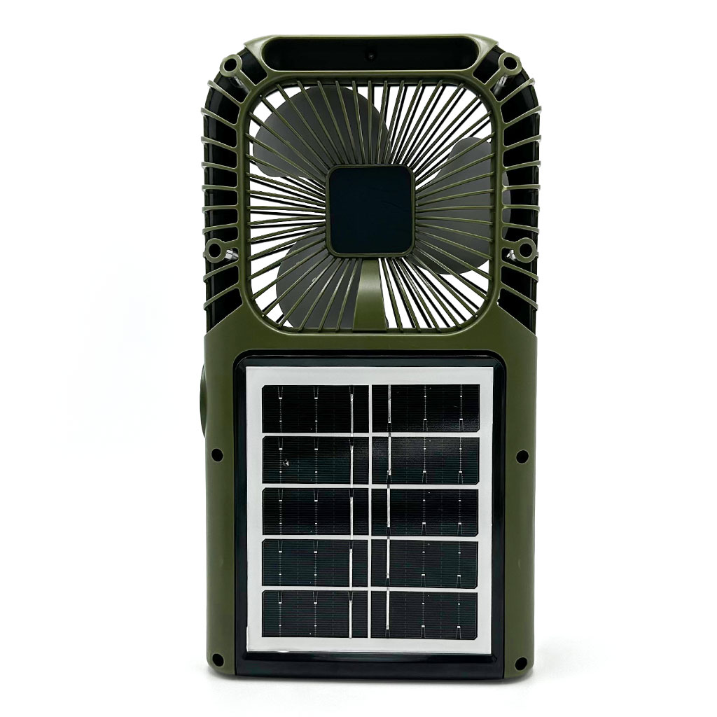 جهاز إضاءة ومروحة تعمل بالطاقة الشمسية وبطارية قابلة للشحنأثناء الشحن، قم بتوصيل منفذ USB مباشرةً بمحوّل 5 فولت، ثم وصّل منفذ التيار المستمر بمقبس الكهرباء. يضيء مؤشر الشحن.عند شحن الجهاز، يومض الضوء الأحمر، وعند اكتمال الشحن يبقى مضيئًا لفترة طويلة. يستغرق الشحن الكامل حوالي 7 إلى 8 ساعات.لتشغيل الإضاءة LED:اضغط على المفتاح مرة واحدة لإضاءة بعيدة المدىمرتين لإضاءة طارئة قويةثلاث مرات لإضاءة طارئة ضعيفةأربع مرات لإيقاف التشغيل وتبديل الأوضاعلتشغيل المروحة الكهربائية:الضغط الأول: رياح قويةالضغط الثاني: متقطعةالضغط الثالث: رياح خفيفةالضغط الرابع: إيقافللشحن بالطاقة الشمسية، ضع اللوح تحت أشعة الشمس المباشرة بزواية 45°، وسيتحول المؤشر الأحمر إلى مضيء للدلالة على بدء الشحن.للشحن عبر USB، قم بإدخال سلك الشحن في منفذ USB بالجهاز، والطرف الآخر في الجهاز المراد شحنه. لا يُنصح باستخدام منفذ USB أثناء شحن البطارية.لاستخدام المصابيح الموفرة للطاقة، أوصل سلكها بمنفذ التيار المستمر في الجهاز، ثم قم بتشغيلها.الملحقات:مزود بمصباحين LED أبيض عالي السطوع بقدرة 3 واط صديقين للبيئة.كابل USB (1 إلى 4) متوافق مع معظم الأجهزة الرقمية مثل الهواتف والكاميرات وأجهزة الألعاب.لوح شمسي بقدرة 6V / 2.5W ذاتي التكيف.