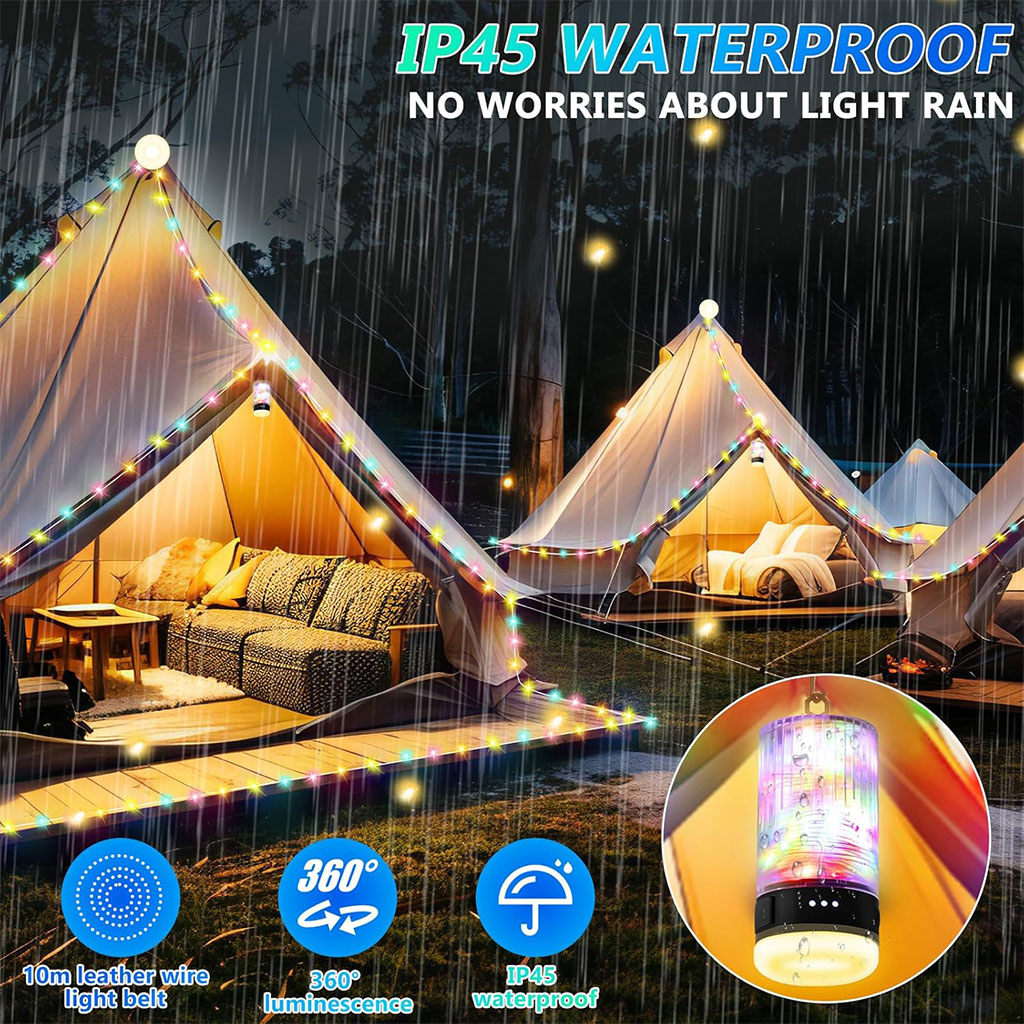Lampe de Camping Enroulable avec Guirlande Lumineuse 10m – مصباح تخييم محمول وقابل للشحن
