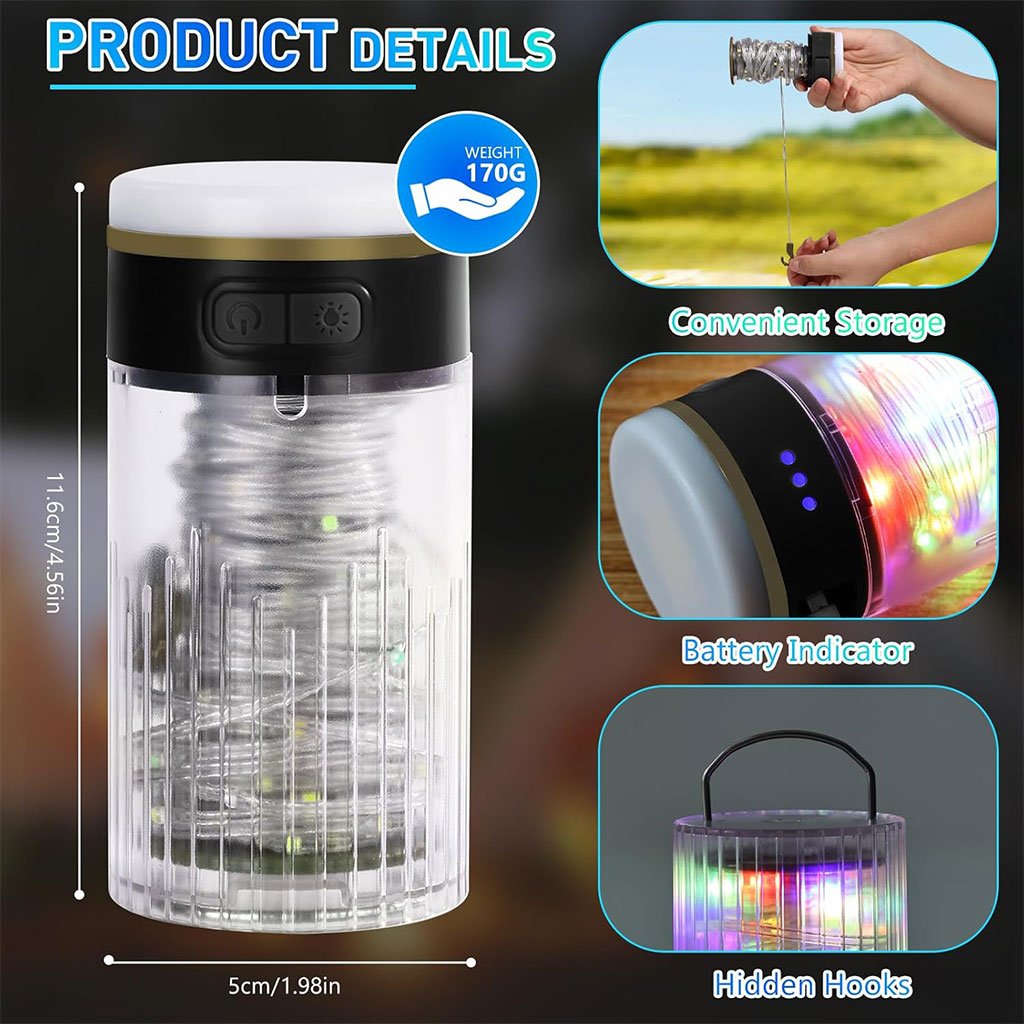 Lampe de Camping Enroulable avec Guirlande Lumineuse 10m – مصباح تخييم محمول وقابل للشحن