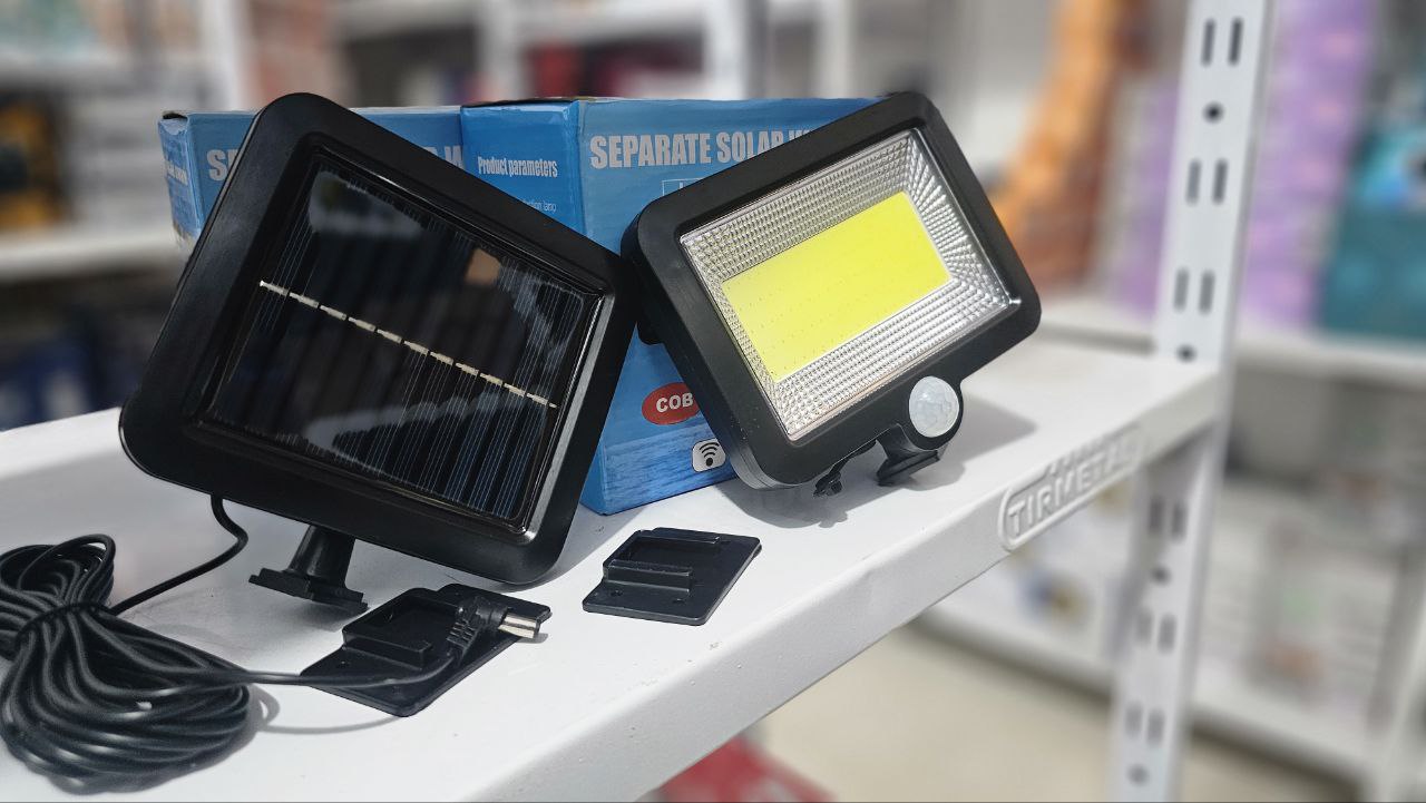 كشاف LED شمسي مع حساس حركة:المميزات:مصباح LED موفر للطاقة.تركيب بسيط وسريع.ضوء أبيض بارد – 400 لومن.مزود بحساس حركة وحساس ضوء مدمجين.مناسب للاستخدام الداخلي والخارجي.مقاوم للعوامل الجوية بدرجة حماية IP44.استهلاك طاقة: 5 واط.الوصف:يعمل بالطاقة الشمسية لتوفير إضاءة آمنة واقتصادية وصديقة للبيئة.مثالي لإضاءة الحدائق، المداخل، الممرات، السلالم، مواقف السيارات.الحساسات تضمن عمل المصباح فقط في الظلام وعند الحاجة.البطارية تُشحن بالطاقة الشمسية نهاراً وتشغل المصباح ليلاً تلقائياً.