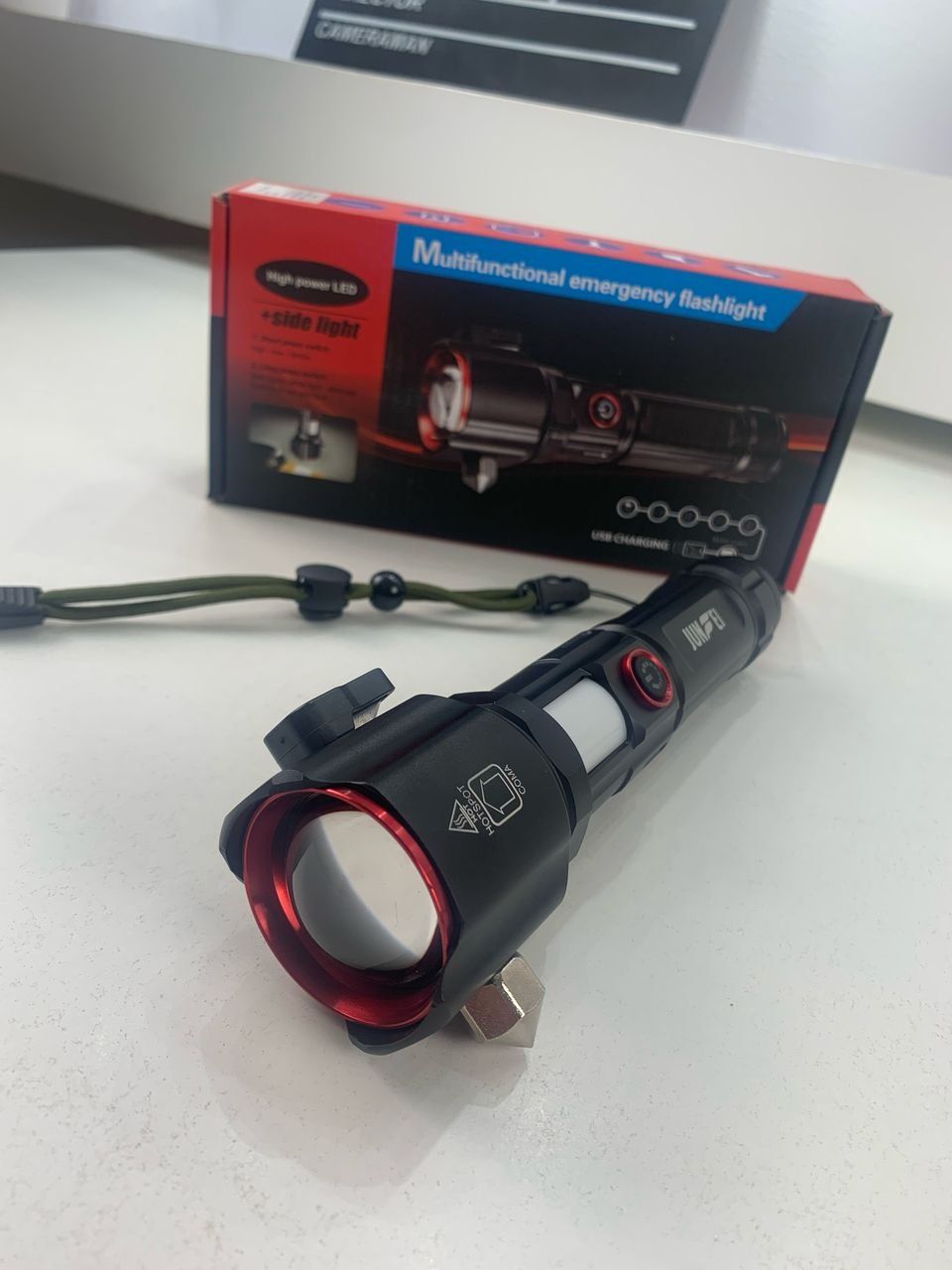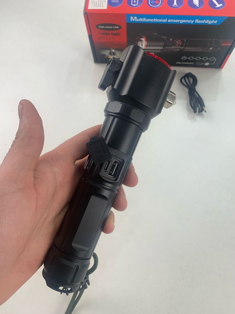 🔦 كشاف يدوي قوي متعدد الوظائف ✅ إضاءة لمسافة تتجاوز 500 متر لتغطية واسعة وزيادة الرؤية ليلاً ✅ يعمل ببطارية قابلة للشحن عبر منفذ USB Type-C ✅ مزوّد بمطرقة أمان وقاطع للطوارئ، مثالي لحالات الحوادث ✅ هيكل من سبائك الألمنيوم المقاوم للصدمات والوقوع حتى 1 متر ✅ أوضاع إضاءة متعددة: قوي / متوسط / منخفض + إضاءة جانبية COB مثالي للرحلات، التخييم، وحالات الطوارئ