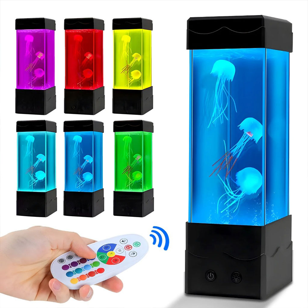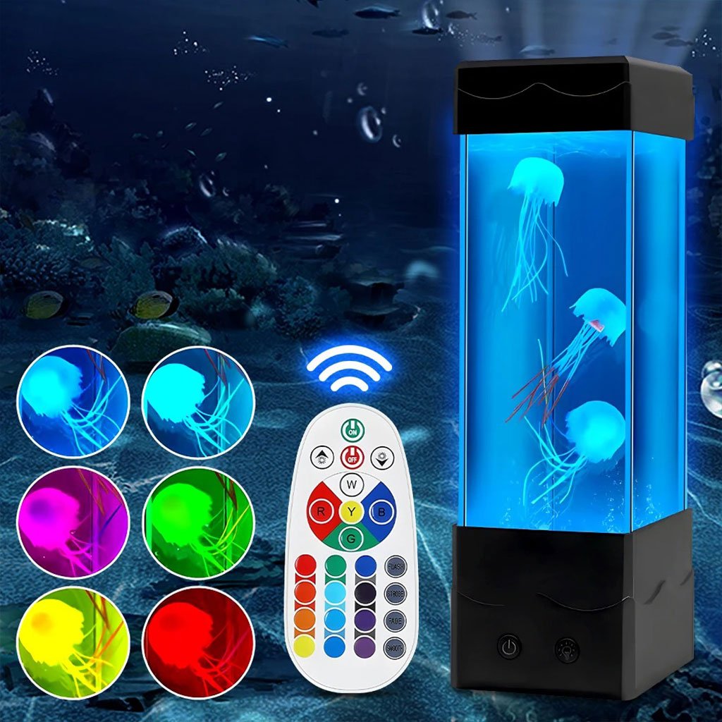 مصباح مائي على شكل قناديل البحر (Jellyfish Lamp)تصميم ساحر: قناديل بحر واقعية تتحرك مع أذرع عائمة لإضاءة مبهرة.إضاءة LED متعددة الألوان: سبعة ألوان يمكن تثبيتها أو تغييرها تلقائياً.هدوء تام: يعمل بمحرك منخفض الضوضاء لجو مريح.يخفف التوتر: يوفر تأثيراً مهدئاً للأطفال والكبار على حد سواء.هدية مثالية: مناسبة لغرف النوم، المكاتب أو كديكور منزلي جذاب.