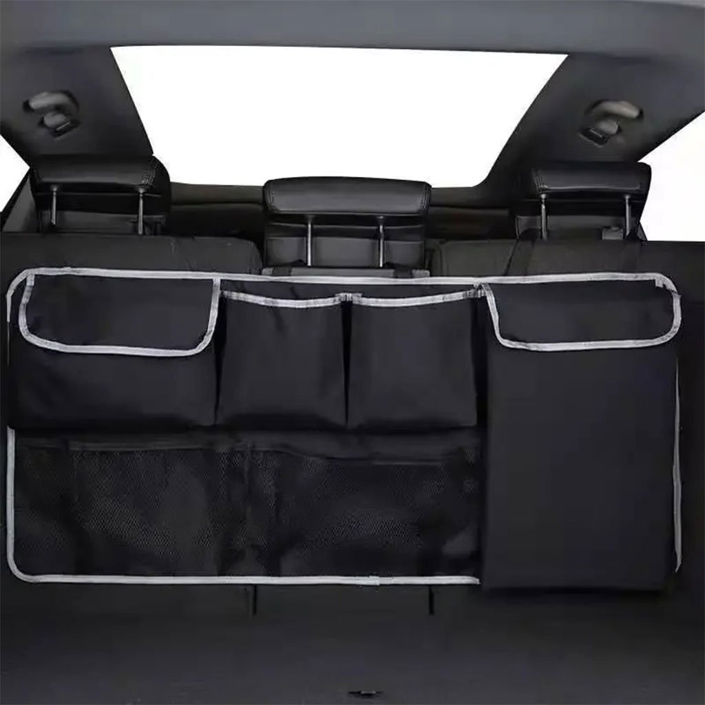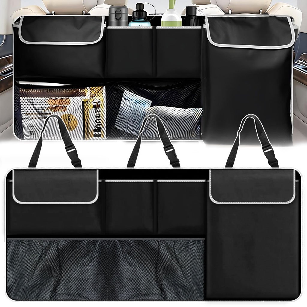 3️⃣ منظم خلفي لمقاعد السيارة 🧳🚗المميزات : – 📚 مساحة تخزين واسعة: جيوب متعددة للكتب، المجلات، الوجبات، المشروبات، الأقلام، الألعاب، التابلات… – 💧 مصنوع من قماش أوكسفورد مقاوم للماء وآمن للأطفال، سهل التنظيف ويقي السيارة من الاتساخ والخدوش. – 🔧 سهل التثبيت والطي، يمكن تركيبه في أي مكان قابل للتوصيل. – 🛣️ مثالي للرحلات الطويلة وتخزين الأدوات، المنظفات، ألعاب الأطفال، معدات الطوارئ والرحلات.الأبعاد: 100×45 سم