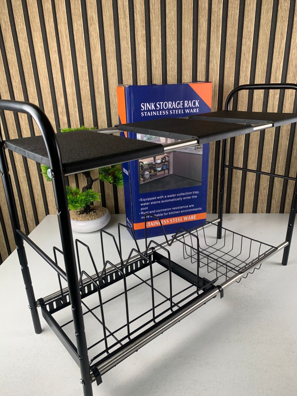 ✨ نظّم مساحتك بذكاء واستغل كل سنتيمتر! ✨ رف تخزين قابل للتوسيع والتعديل، الحل المثالي لفوضى أسفل الحوض والمطابخ الصغيرة 🖤🌟 مميزات قوية تجعله اختيارك الأفضل:📏 عرض قابل للتوسيع حسب الحاجة يتكيف مع خزائنك بسهولة بفضل التصميم التلسكوبي ↔️ قابل للتعديل من 48 سم إلى 90 سم ليناسب جميع المساحات.📐 ارتفاع قابل للتعديل ومرن مستويان بارتفاع قابل للتغيير (كل 5 سم) ✔️ يتجاوز أنابيب الصرف ✔️ يستغل المساحة العمودية لأقصى حد🧰 طقم تخزين متكامل (Black 2-Tier) يأتي مع إكسسوارات عملية لتنظيم مثالي: 🍳 حامل أواني على شكل M 🧺 سلة تخزين معلّقة 📦 3 رفوف قابلة للإزالة💪 قوي وثابت مصنوع من فولاذ عالي الجودة بلمسة سوداء أنيقة يتحمّل الأغراض الثقيلة مثل: ✔️ أواني الطبخ ✔️ قوارير التنظيف ✔️ الأدوات المنزلية الثقيلة🔧 تركيب سهل واستعمال متعدد ✔️ تركيب سريع بدون أدوات معقدة ✔️ مثالي أسفل الحوض ✔️ مناسب أيضًا للمخزن، غرفة الغسيل أو حتى المرآب📋 المواصفات التقنية:🧱 المادة: فولاذ كربوني عالي المقاومة🎨 اللون: أسود مطفي↔️ العرض: من 48 إلى 90 سم↕️ الارتفاع: 50 سم (قابل للتعديل)📦 العمق: 25 سم🧩 الملحقات: حامل أواني ×1 | سلة ×1 | رفوف ×3✨ تنظيم ذكي… مساحة أكبر… راحة يومية