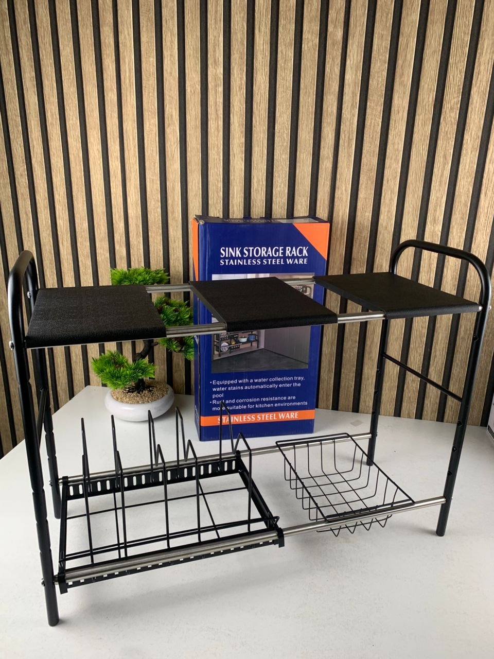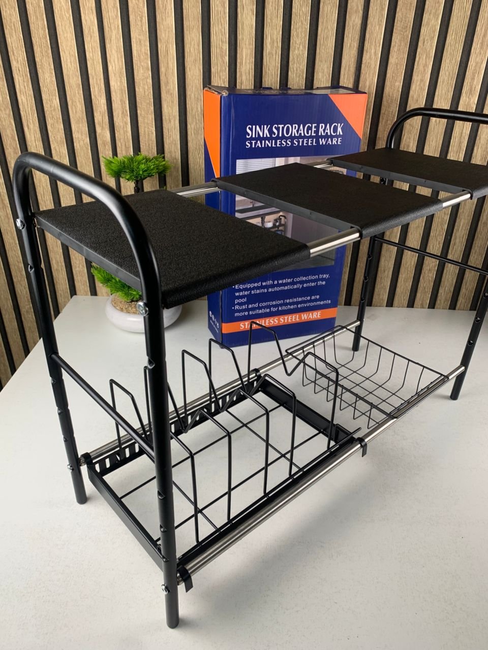 ✨ نظّم مساحتك بذكاء واستغل كل سنتيمتر! ✨ رف تخزين قابل للتوسيع والتعديل، الحل المثالي لفوضى أسفل الحوض والمطابخ الصغيرة 🖤🌟 مميزات قوية تجعله اختيارك الأفضل:📏 عرض قابل للتوسيع حسب الحاجة يتكيف مع خزائنك بسهولة بفضل التصميم التلسكوبي ↔️ قابل للتعديل من 48 سم إلى 90 سم ليناسب جميع المساحات.📐 ارتفاع قابل للتعديل ومرن مستويان بارتفاع قابل للتغيير (كل 5 سم) ✔️ يتجاوز أنابيب الصرف ✔️ يستغل المساحة العمودية لأقصى حد🧰 طقم تخزين متكامل (Black 2-Tier) يأتي مع إكسسوارات عملية لتنظيم مثالي: 🍳 حامل أواني على شكل M 🧺 سلة تخزين معلّقة 📦 3 رفوف قابلة للإزالة💪 قوي وثابت مصنوع من فولاذ عالي الجودة بلمسة سوداء أنيقة يتحمّل الأغراض الثقيلة مثل: ✔️ أواني الطبخ ✔️ قوارير التنظيف ✔️ الأدوات المنزلية الثقيلة🔧 تركيب سهل واستعمال متعدد ✔️ تركيب سريع بدون أدوات معقدة ✔️ مثالي أسفل الحوض ✔️ مناسب أيضًا للمخزن، غرفة الغسيل أو حتى المرآب📋 المواصفات التقنية:🧱 المادة: فولاذ كربوني عالي المقاومة🎨 اللون: أسود مطفي↔️ العرض: من 48 إلى 90 سم↕️ الارتفاع: 50 سم (قابل للتعديل)📦 العمق: 25 سم🧩 الملحقات: حامل أواني ×1 | سلة ×1 | رفوف ×3✨ تنظيم ذكي… مساحة أكبر… راحة يومية