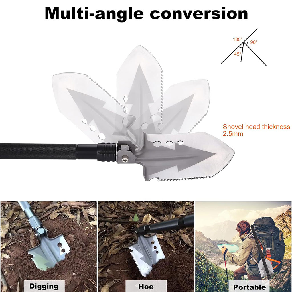⛺️ مجرفة تخييم متعددة الاستعمالات – أداة البقاء المثالية✔️ قوية وصلبة : مصنوعة من فولاذ عالي الكربون لمقاومة أقصى الظروف. ✔️ أداة 3 في 1 : مثالية للحفر، تقطيع الأشجار، حفر الخنادق أو حتى كأداة بستانية للغرس. ✔️ معدات نجاة مدمجة :🧭 بوصلة لتحديد الاتجاه🍾 فتّاحة زجاجات⛏️ معول للصيد أو الرحلات الشتوية✔️ تصميم قابل للتعديل : يمكن ضبط طولها بين 36.8 سم و 71.9 سم حسب الحاجة. ✔️ مساحة تخزين ذكية : المقبض يحتوي على مقاطع داخلية لتخزين أدوات النجاة الإضافية. ✔️ سهولة النقل : تأتي مع حقيبة متينة مزودة بحزام وحلقة Velcro لحملها وتنظيم جميع القطع.📐 الأبعاد : ‎74 × 13.9 × 3.0 سم ⚖️ الوزن : 1.62 كغ 🎨 اللون : أسود (28 بوصة) 🛠 المادة : فولاذ عالي الكربون