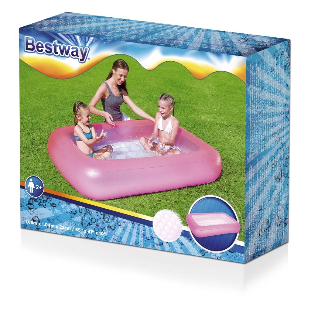 حمام سباحة قابل للنفخ للأطفال 165 × 104 × 25 سم – Bestway 51115تصميم مناسب للأطفال بعمر 3 سنوات فأكثر.قاعدة لينة قابلة للنفخ توفر الراحة أثناء اللعب.جدران سميكة قابلة للنفخ تعمل كمسند آمن للطفل.سهل النفخ والتفريغ والتخزين.السعة: 102 لتر.المادة: PVC بسُمك 0.24 مم.حجم العبوة: 24 × 24 × 6 سم – الوزن: 2 كجم.المرفقات: قطعة إصلاح.