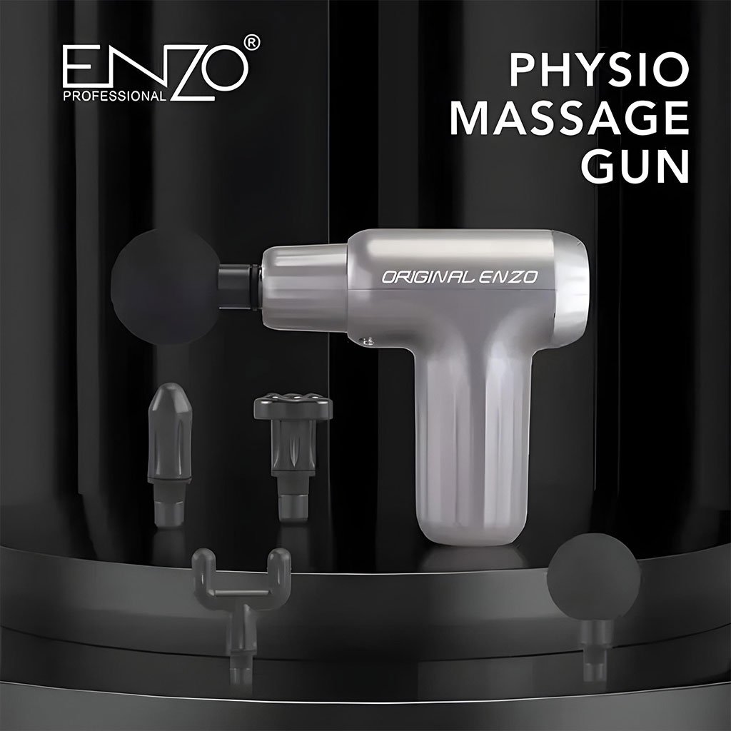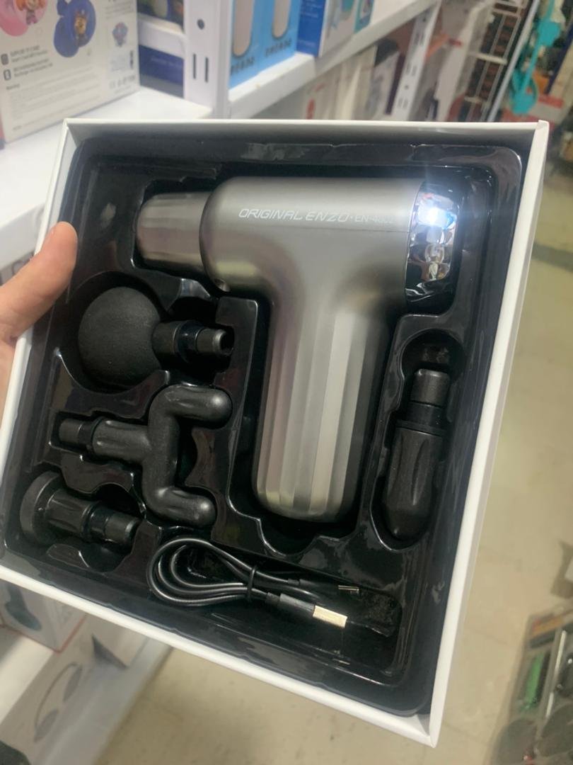 مسدس التدليك ENZO (إيطالي)أربع رؤوس مختلفة: لتدليك كل عضلات الجسم (للفقرات، للعظام، للعضلات، وللاستخدام العام).6 مستويات اهتزاز: مع تفعيل سرعة توربو إضافية عند الضغط على الجسم لتفتيت الدهون بسرعة وراحة.فوائد صحية: تخفيف الألم، إزالة التوتر والإرهاق، تحسين الدورة الدموية، إزالة التشنجات والشد العضلي.موصى به من الأطباء والمعالجين: مثالي للرياضيين المحترفين ويعمل بطاقة عالية.