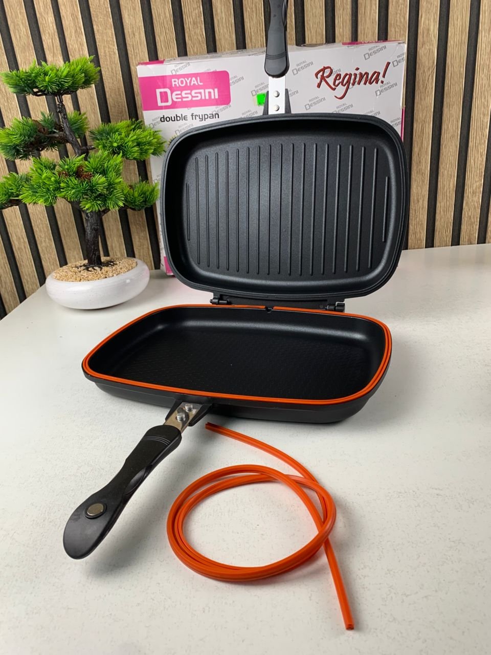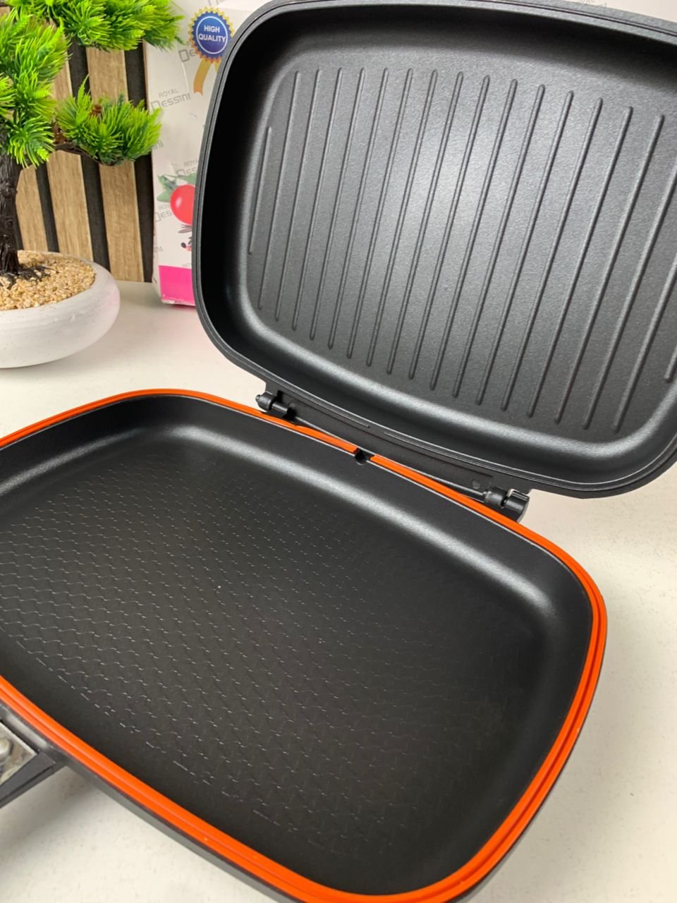 مقلاة ديسيني مزدوجة الوجه – شواء، قلي وطهي مثالي في منزلكأبهر عائلتك وأصدقاءك بأطباق لحم مشوية بإتقان وكأنها من المطاعم، وذلك بفضل مقلاة ديسيني مزدوجة الوجه. الآن لم تعد بحاجة لدفع أسعار مرتفعة، يمكنك تحضير أشهى الأطباق مباشرة في مطبخك بكل سهولة.تتميز المقلاة بسطحين مختلفين:سطح أملس مناسب للقلي والطهي اليوميسطح مخطط يمنحك شواءً مثالياً بطعم احترافييوزع الوجهان الحرارة بشكل متساوٍ، ما يضمن نضج اللحم بشكل مثالي في كل مرة.مقلاة ديسيني ليست مخصصة للشواء فقط، بل هي متعددة الاستعمالات؛ مناسبة للقلي ويمكن استخدامها أيضاً كمقلاة ضغط للحصول على لحوم طرية تتفكك بسهولة عن العظم دون قضاء وقت طويل في الطهي.مصنوعة من الألمنيوم المصبوب بالضغط مع طبقة مانعة للالتصاق، مما يمنع التصاق الطعام ويسهّل التنظيف ويضمن استخداماً طويلاً. كما أنها متوافقة مع مختلف أنواع المواقد: الغاز، الكهربائية، السيراميك والهلوجين.المميزاتمقلاة ضغط مزدوجة الوجه عالية الجودةتقنية توزيع الحرارة الإشعاعية لمذاق أفضل والحفاظ على القيمة الغذائيةطهي بدون تطاير الزيتمقابض تبقى باردة أثناء الاستعمالدخان وروائح أقلسهلة الطهي وسهلة التنظيفتجربة طهي ممتعة ومريحةالمواصفاتالمادة: ألمنيوماللون: أسودالقطر: 36 سممقلاة عملية، متعددة الاستعمالات وفعّالة، مثالية لكل مطبخ عصري.