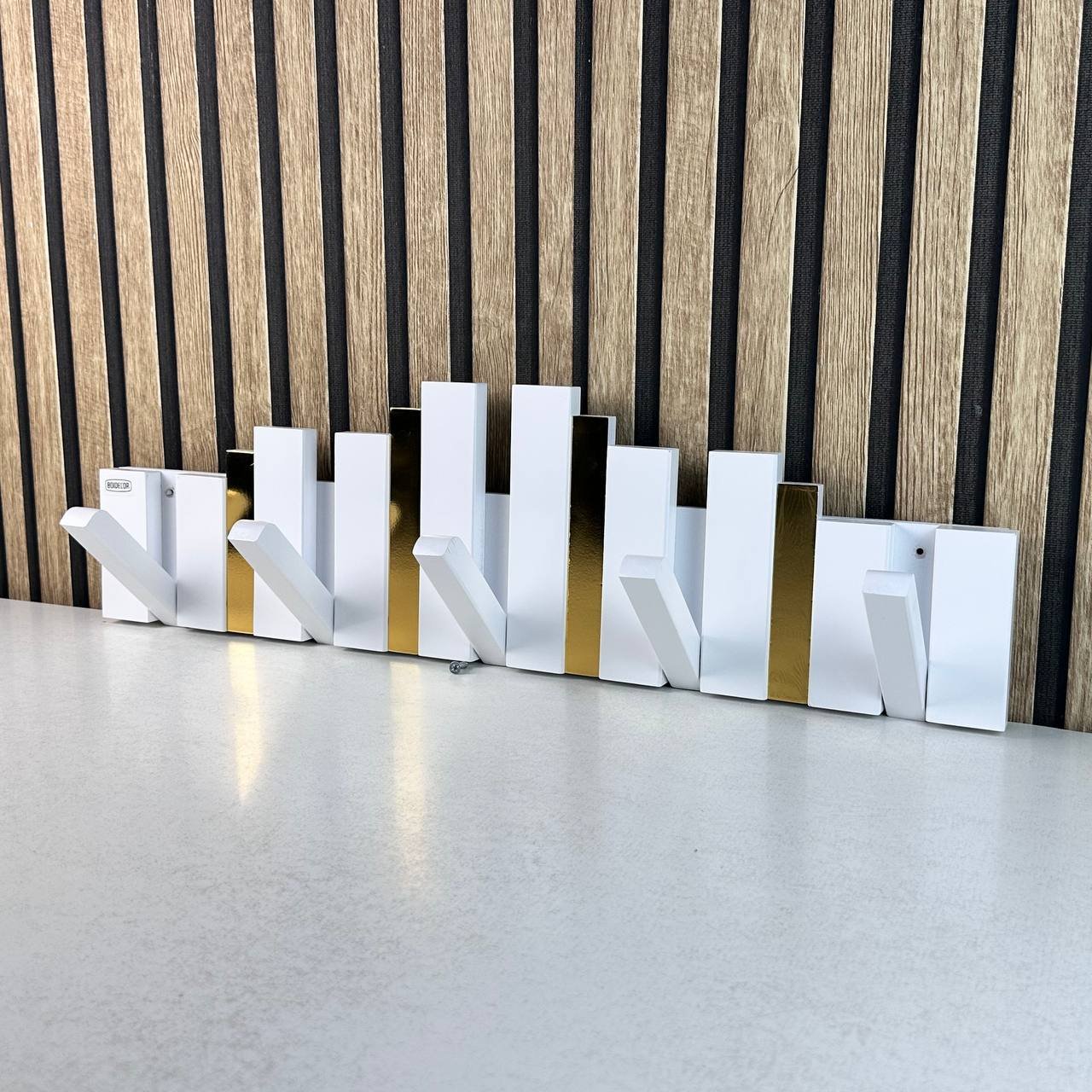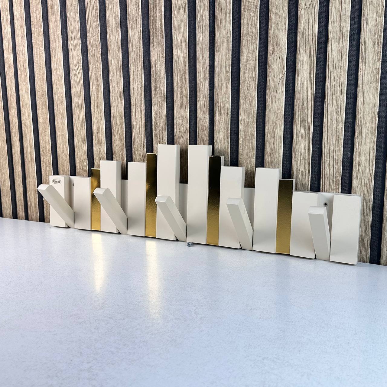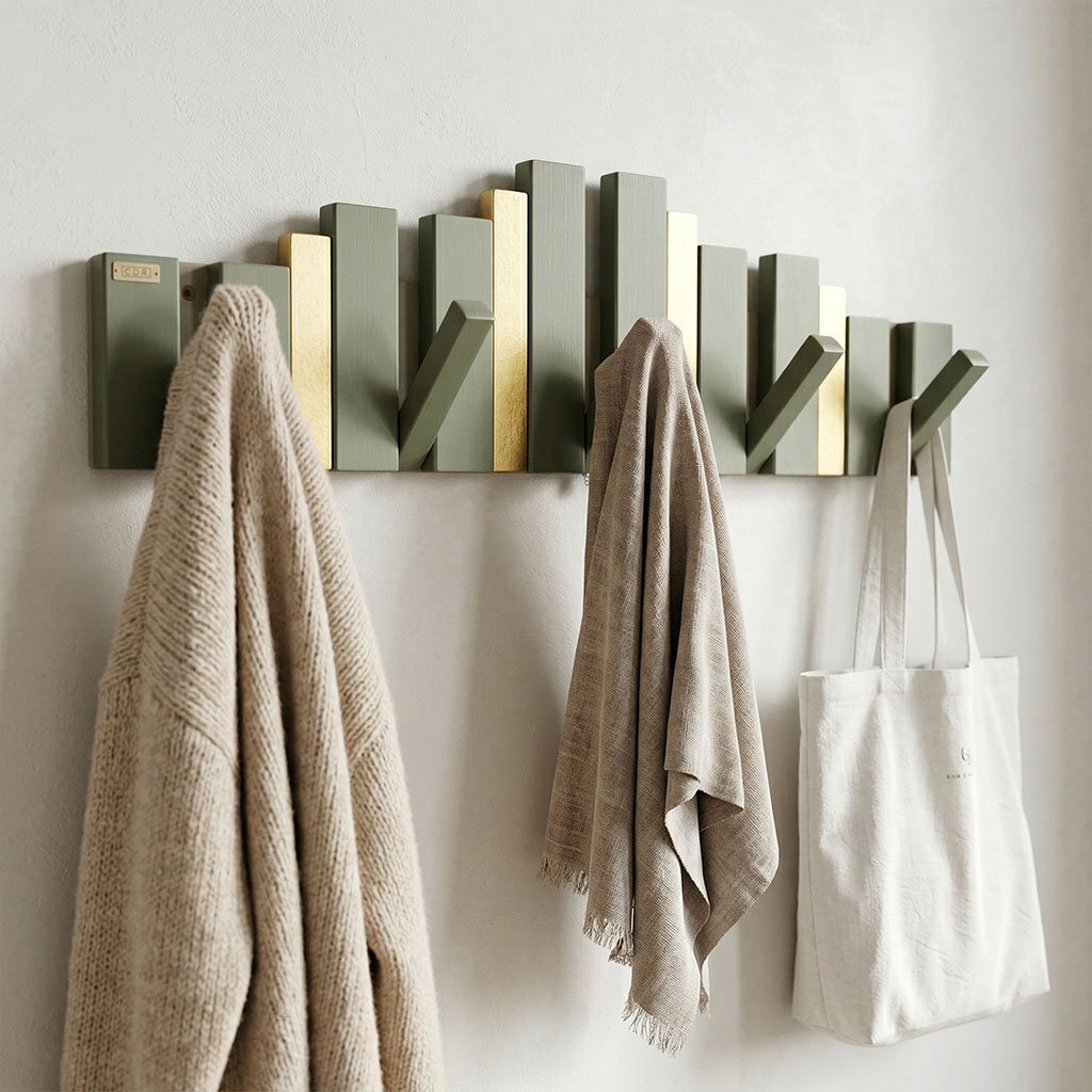 تصميم ذكي وقابل للطي: تتميز بـ “مفاتيح” خشبية يمكنك إنزالها عند الحاجة لتعليق الملابس، الحقائب، أو المناشف، وطيها للأعلى لتصبح قطعة ديكور مسطحة وأنيقة عند عدم الاستخدام.جودة تصنيع استثنائية: مصنوعة من خشب عالي الجودة بلمسات نهائية ناعمة، مع تطعيمات باللون الذهبي الفاخر تضفي لمسة من الفخامة على أي غرفة.متعددة الاستخدامات: مثالية لمدخل المنزل (الكونسول)، غرف النوم، الحمامات، أو حتى المكاتب العصرية.سعة تعليق كبيرة: توفر نقاط تعليق متعددة بأطوال مختلفة لتناسب المعاطف الثقيلة والحقائب والإكسسوارات الخفيفة.سهولة التركيب: تأتي جاهزة للتثبيت على الحائط لتوفير المساحة الأرضية وجعل المكان يبدو أكثر اتساعاً وتنظيماً.المواصفات الفنية:المادة: خشب طبيعي معالج.الألوان المتاحة: (أبيض، بيج، أزرق، خشبي طبيعي، أخضر زيتوني) مع لمسات ذهبية.النمط: مودرن / نيو كلاسيك.الأبعاد : 70x20cm.