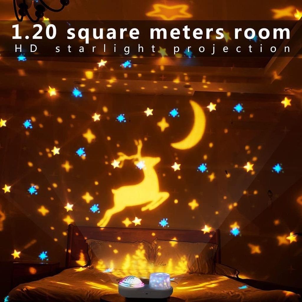 جهاز عرض أمواج المحيط والنجوم – مزود بـ 6 شرائح قابلة للتبديل و10 ألوان لأمواج المحيط لخلق أجواء مريحة للأطفال. دوران 360° – يغطي الغرفة بالكامل لتجربة بصرية ساحرة. مؤقت مدمج – لإيقاف الجهاز تلقائيًا بعد وقت محدد، مما يضمن نومًا هادئًا. زينة متعددة الاستخدامات – مثالي لغرف الأطفال، الحفلات أو كعنصر ديكوري مميز.