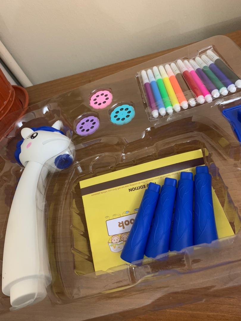 وصف المنتججهاز عرض للرسم للأطفال على شكل زرافةتصميم جذاب: جهاز عرض لطيف على شكل زرافة بألوان زاهية لجذب انتباه الأطفال وتشجيعهم على الرسم والتلوين.طريقة الاستخدام: يعمل بثلاث بطاريات AA (غير مشمولة)، مع 6 شرائح عرض تحتوي على 36 صورة مختلفة، ويمكن مسح الرسومات بسهولة بالإسفنجة المرفقة لإعادة الاستخدام.تحفيز المهارات: يساعد الطفل على تحسين مهارة التحكم باليد والأصابع ويعزز الإبداع والخيال منذ سن مبكرة.مجموعة متكاملة: تشمل الجهاز، طاولة رسم، إسفنجة، دفتر للرسم، و12 قلم تلوين.المادة: بلاستيك آمن للأطفال.الأبعاد: الطاولة 25×21×35 سم، ارتفاع السطح عن الأرض 13 سم، وارتفاع جهاز العرض عن الطاولة 16.5 سم.مناسب للأطفال من عمر 3 سنوات فأكثر.