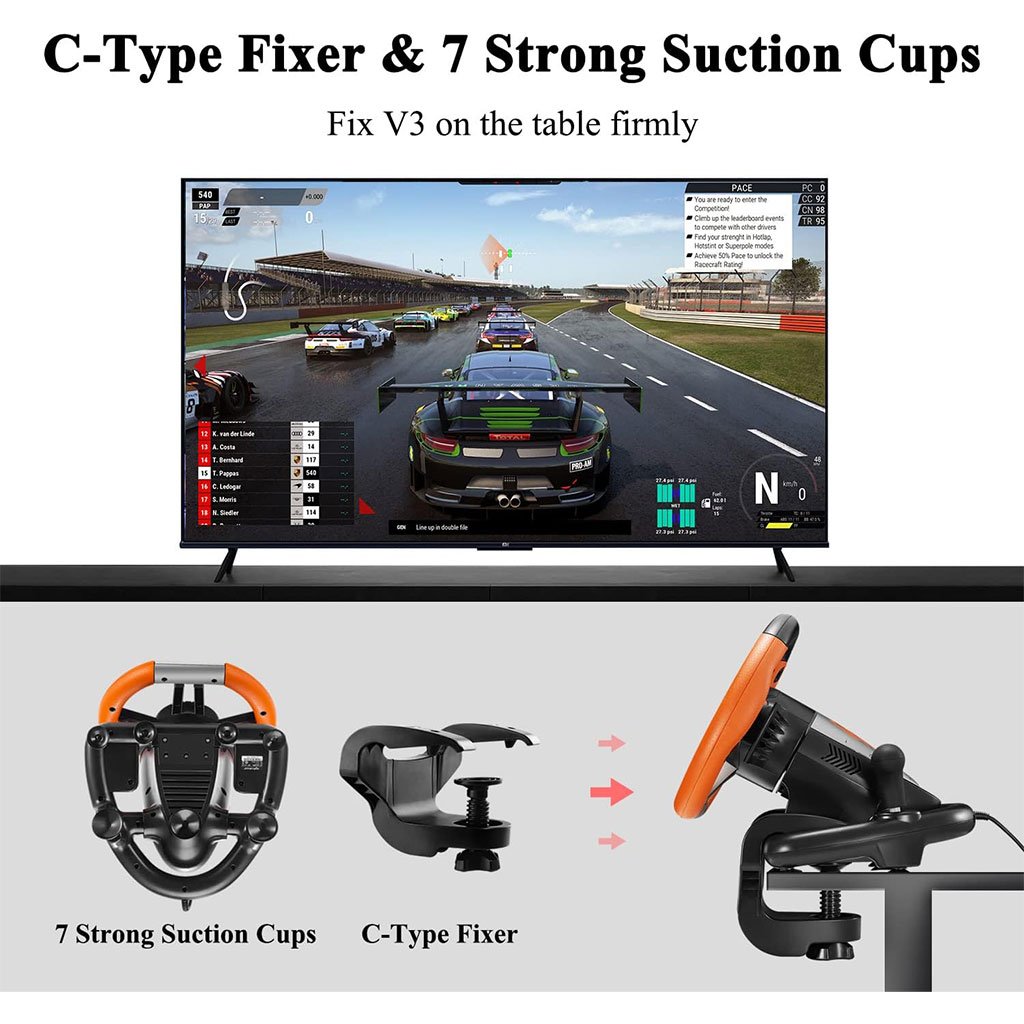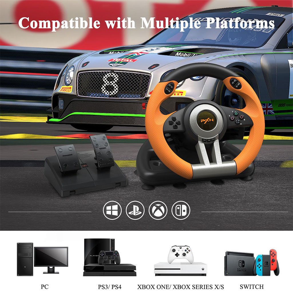 🏎️ عجلة قيادة الألعاب PXN V3 – متوافقة مع 6 منصاتتوافق شامل: تعمل على PC، PS3، PS4، Xbox One، Xbox Series X/S، Switch، وأنظمة Windows 7/8/10/11.متعة بلا حدود: مثالية لألعاب مثل Forza Horizon، Need for Speed، F1، Mario Kart، وغيرها.تحكم واقعي: دواسات مريحة وسريعة الاستجابة، تصميم مانع للانزلاق، مع إمكانية التبديل بين وضعي X و D.تصميم قوي: مصنوعة من ABS عالي الجودة مع مشابك قوية لتثبيت مثالي على المكتب.