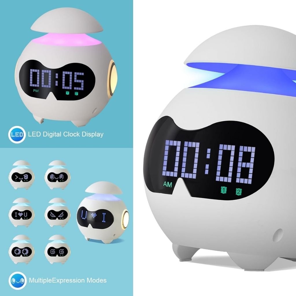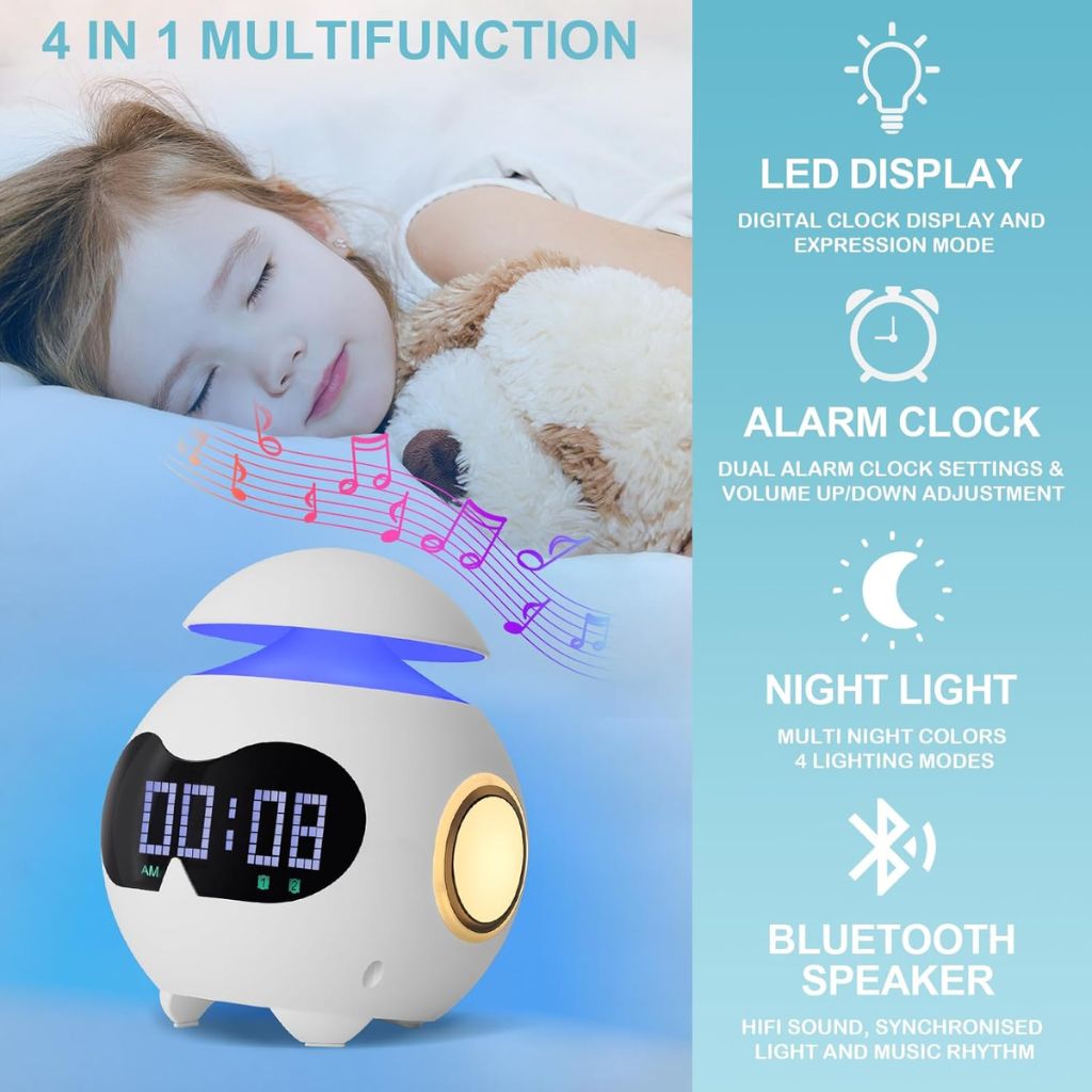 ساعة أطفال ذكية بواجهة تعبيرية ساعة منبّه مرحة للأطفال تجمع بين الإضاءة والموسيقى.المميزات الرئيسية:عرض تعابير متغيرة: تجعل الاستيقاظ ممتعًا للأطفال.إضاءة ليلية مدمجة: لجو مريح قبل النوم.مكبر صوت بلوتوث: لتشغيل القصص أو الأغاني.منبّهان منفصلان: لتناسب الروتين اليومي.تصميم صغير وأنيق: مثالي لطاولة السرير.