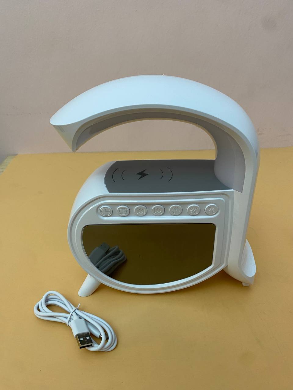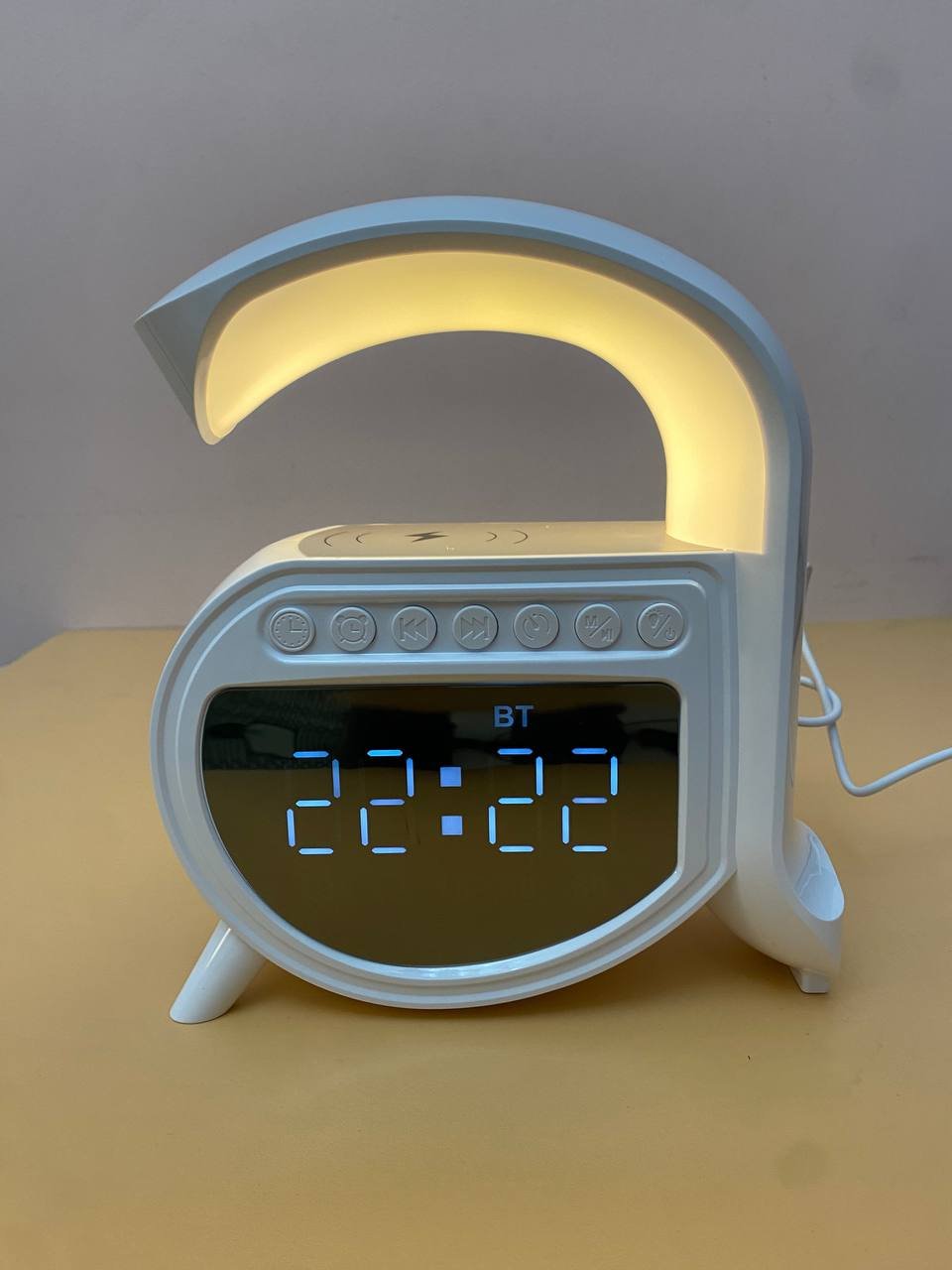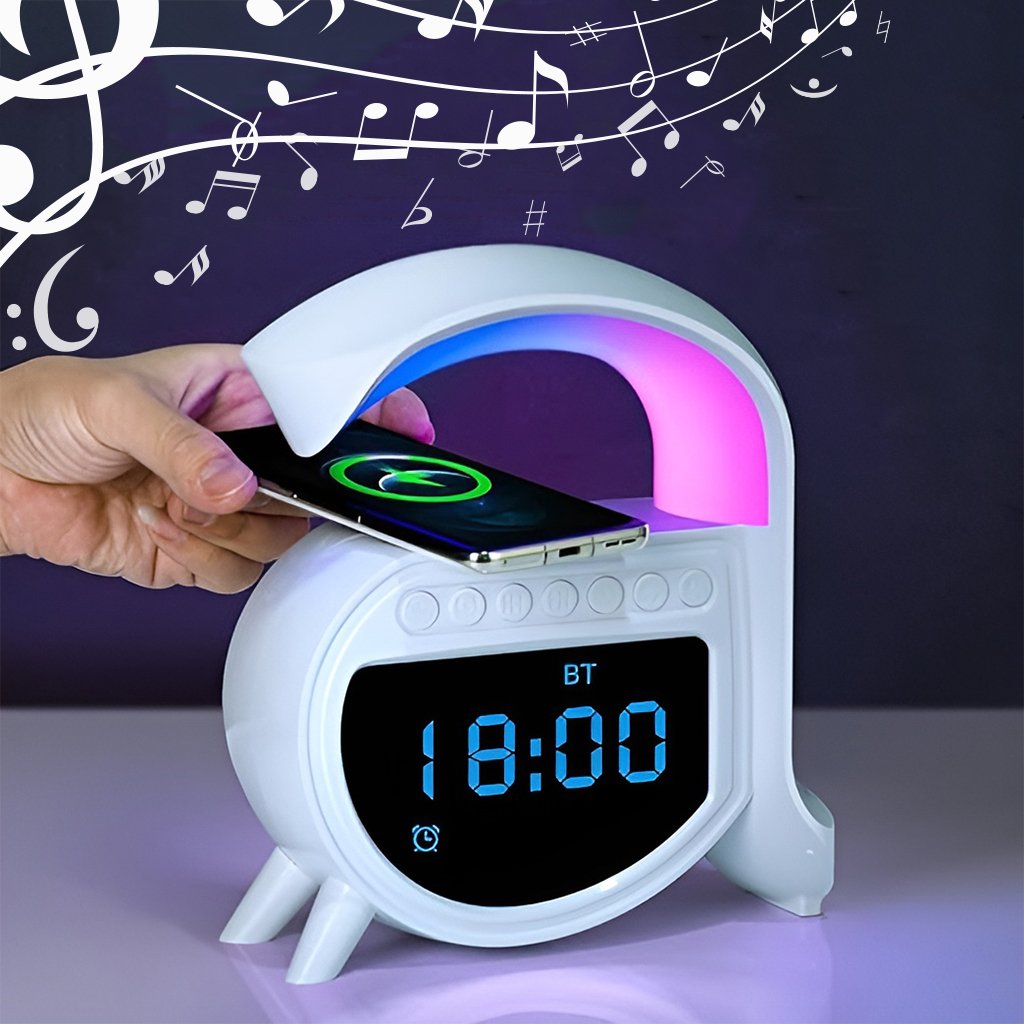 مصباح مكتب Zoopeen متعدد الوظائف:وظيفة المنبه: مزود بساعة منبه و7 أصوات مهدئة (ضوضاء بيضاء، موسيقى خفيفة، أمواج، ضفادع، تهويدات).شحن لاسلكي سريع 15 واط: اشحن هاتفك بمجرد وضعه على قاعدة المصباح.سماعة بلوتوث مدمجة: للاستماع للموسيقى بجودة HiFi أو استقبال المكالمات.إضاءة محيطية متغيرة الألوان: 13 وضعاً للإضاءة بألوان متعددة، يمكن تثبيتها أو مزامنتها مع إيقاع الموسيقى.بطارية مدمجة 1200 مللي أمبير: تشغيل لاسلكي وإضاءة ناعمة مناسبة للاسترخاء.المحتويات:1 × مصباح Zoopeen1 × كابل USB للشحن1 × دليل استخدامتصميم عصري أنيق يجعل منه هدية مثالية لأعياد الميلاد والمناسبات الخاصة.