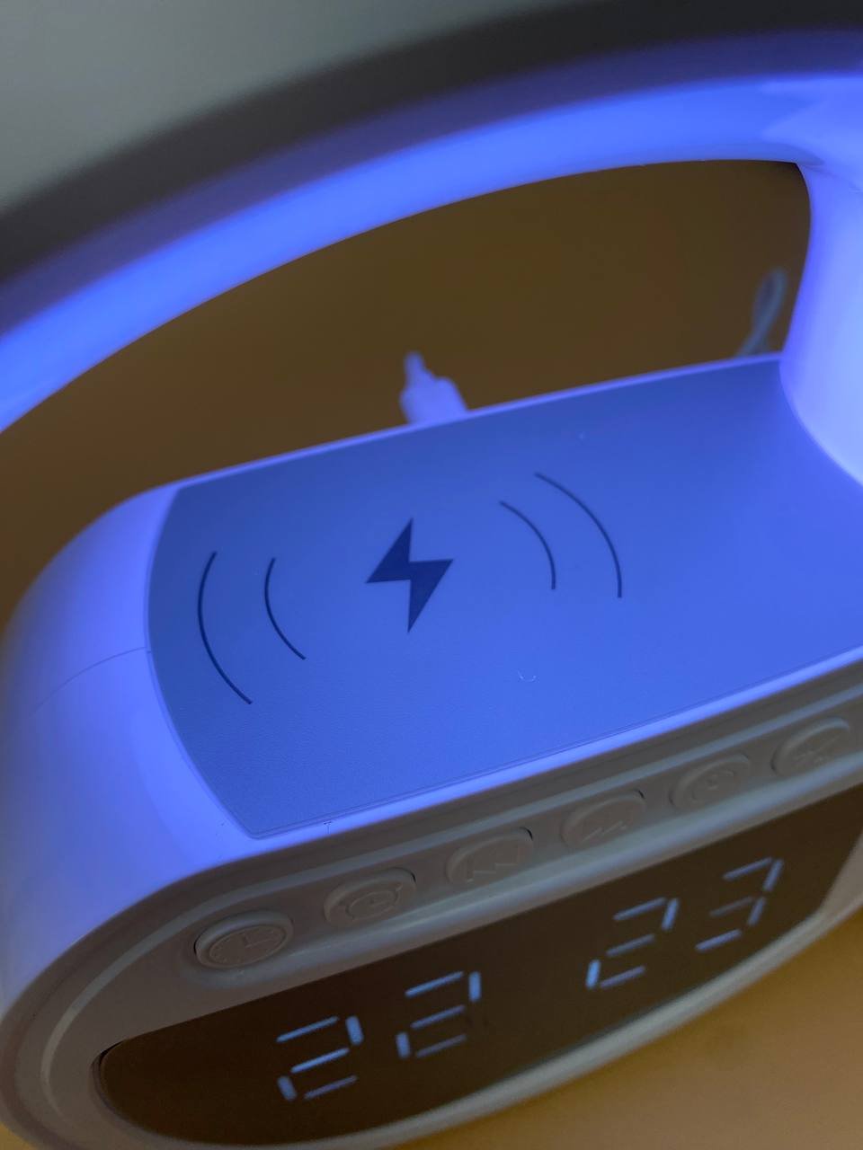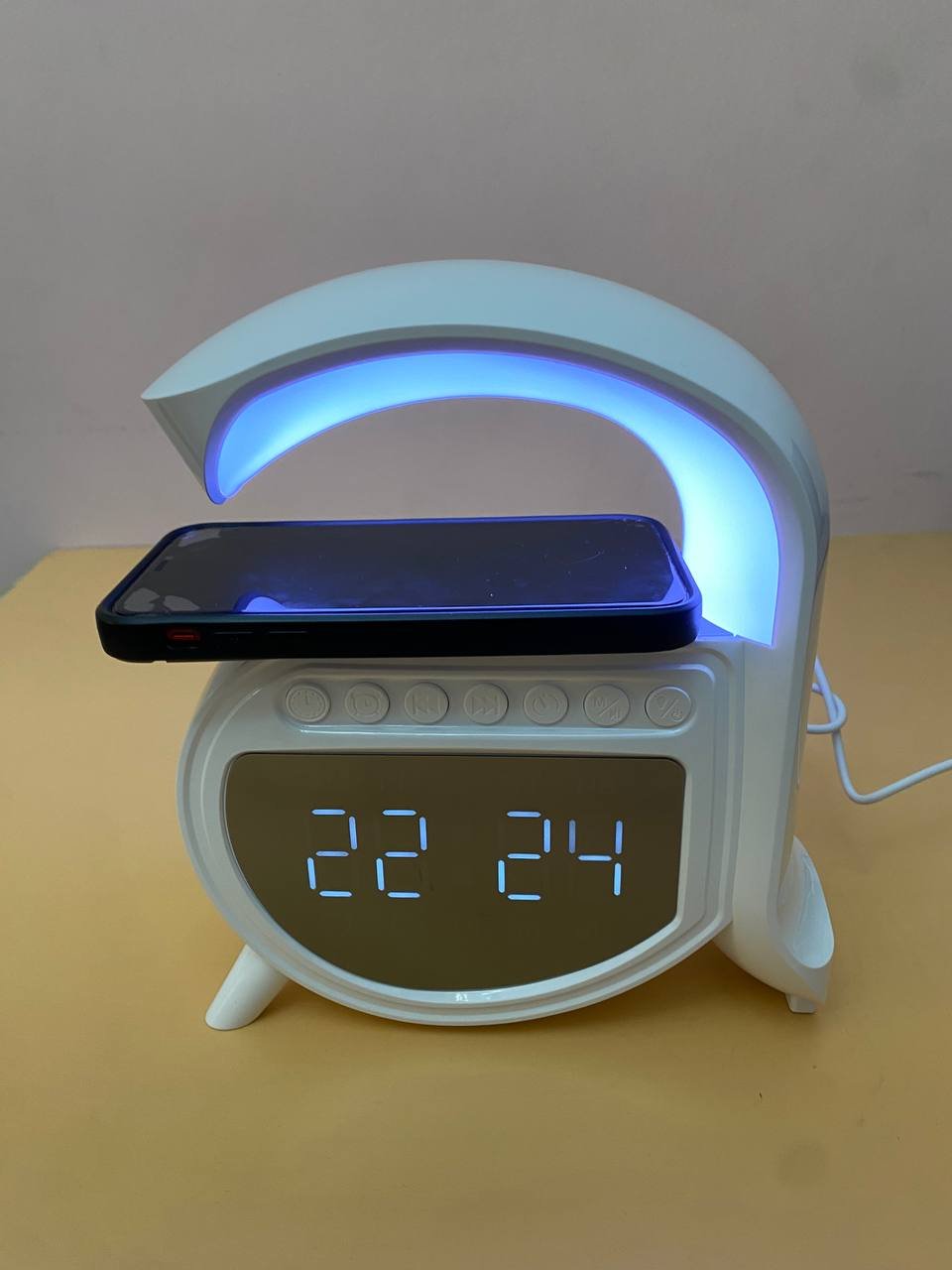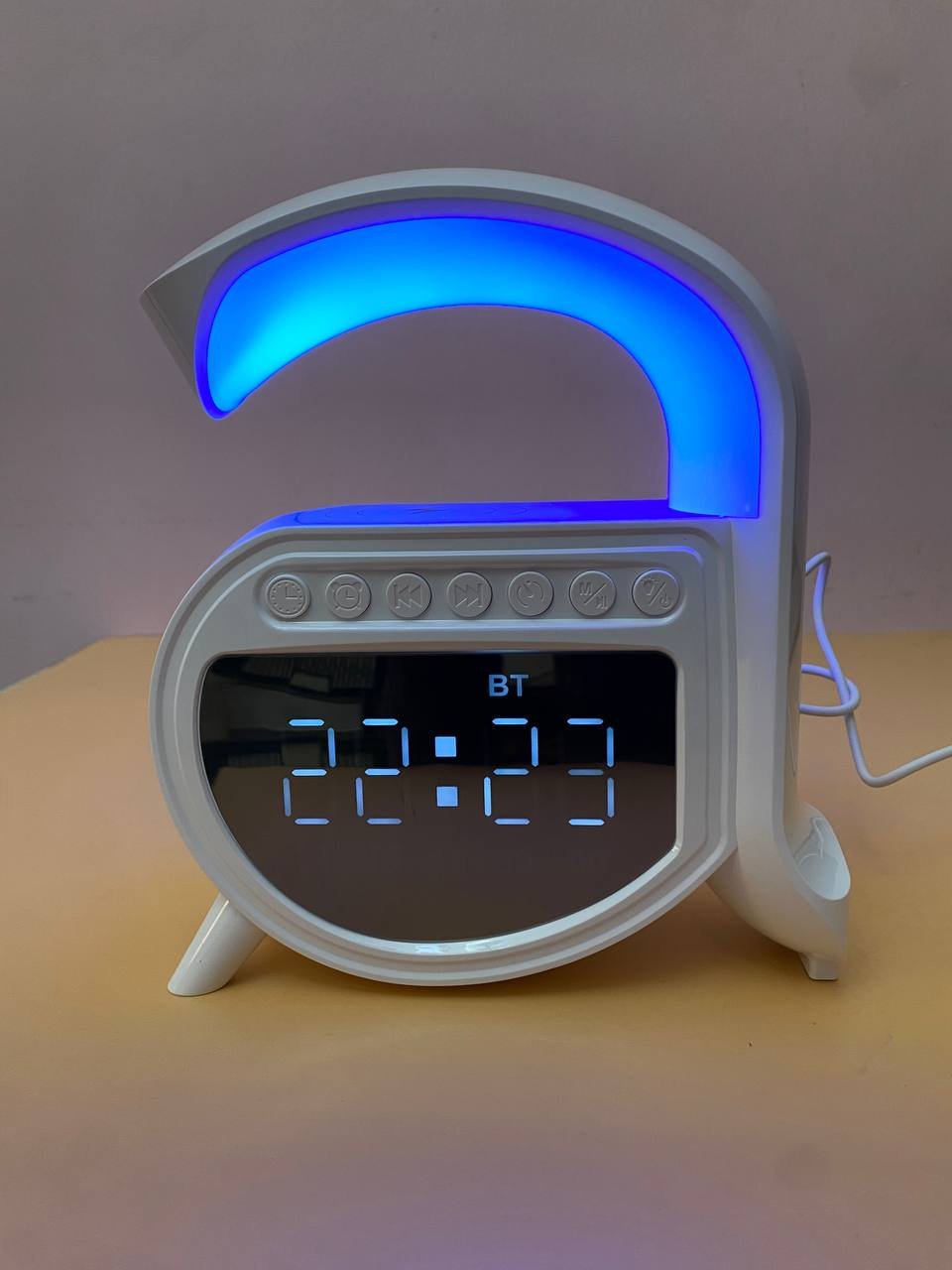 مصباح مكتب Zoopeen متعدد الوظائف:وظيفة المنبه: مزود بساعة منبه و7 أصوات مهدئة (ضوضاء بيضاء، موسيقى خفيفة، أمواج، ضفادع، تهويدات).شحن لاسلكي سريع 15 واط: اشحن هاتفك بمجرد وضعه على قاعدة المصباح.سماعة بلوتوث مدمجة: للاستماع للموسيقى بجودة HiFi أو استقبال المكالمات.إضاءة محيطية متغيرة الألوان: 13 وضعاً للإضاءة بألوان متعددة، يمكن تثبيتها أو مزامنتها مع إيقاع الموسيقى.بطارية مدمجة 1200 مللي أمبير: تشغيل لاسلكي وإضاءة ناعمة مناسبة للاسترخاء.المحتويات:1 × مصباح Zoopeen1 × كابل USB للشحن1 × دليل استخدامتصميم عصري أنيق يجعل منه هدية مثالية لأعياد الميلاد والمناسبات الخاصة.