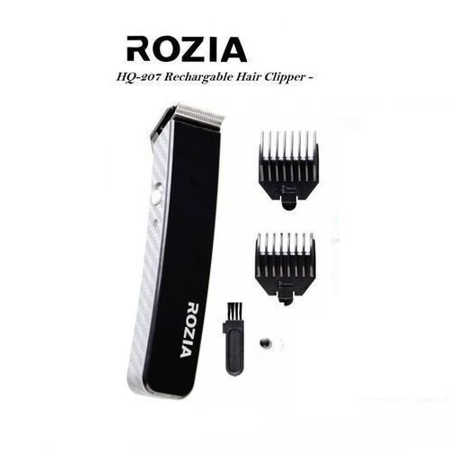 Rozia HQ207 ماكينة حلاقة شعر ولحية:متعددة الوظائف وقابلة لإعادة الشحن.مزودة بشفرات بعرض 40 مم.تعمل بجهد 220 – 240 فولت.مدة عمل تصل حتى 45 دقيقة بعد الشحن.وقت الشحن: 4 – 5 ساعات.يمكن استخدامها كآلة قص شعر أو كآلة تهذيب لحية، سهلة الحمل في حقيبة الحلاقة.