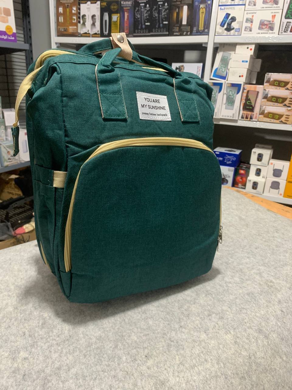 حقيبة حفاضات للأمهات مع سرير قابل للطيالمادة: بوليستر مقاوم للماءالألوان المتوفرة: أخضر / أزرق سماوي / بنفسجي / جمبريالحجم: 32 × 20 × 41 سممحتويات العبوة: حقيبة حفاضات للأمهات + مفرش إسفنجيطريقة طي السرير:فك الدعامة الوسطية أولاً ثم ضعها بشكل مسطح إلى النصف.قبل الطي، اجعل السرير مستويًا واضغط على شكل X بدون عنف.ثبّت السحّاب الخلفي مع الأمامي واسحبه برفق مع التأكد من تثبيت القفل جيدًا.