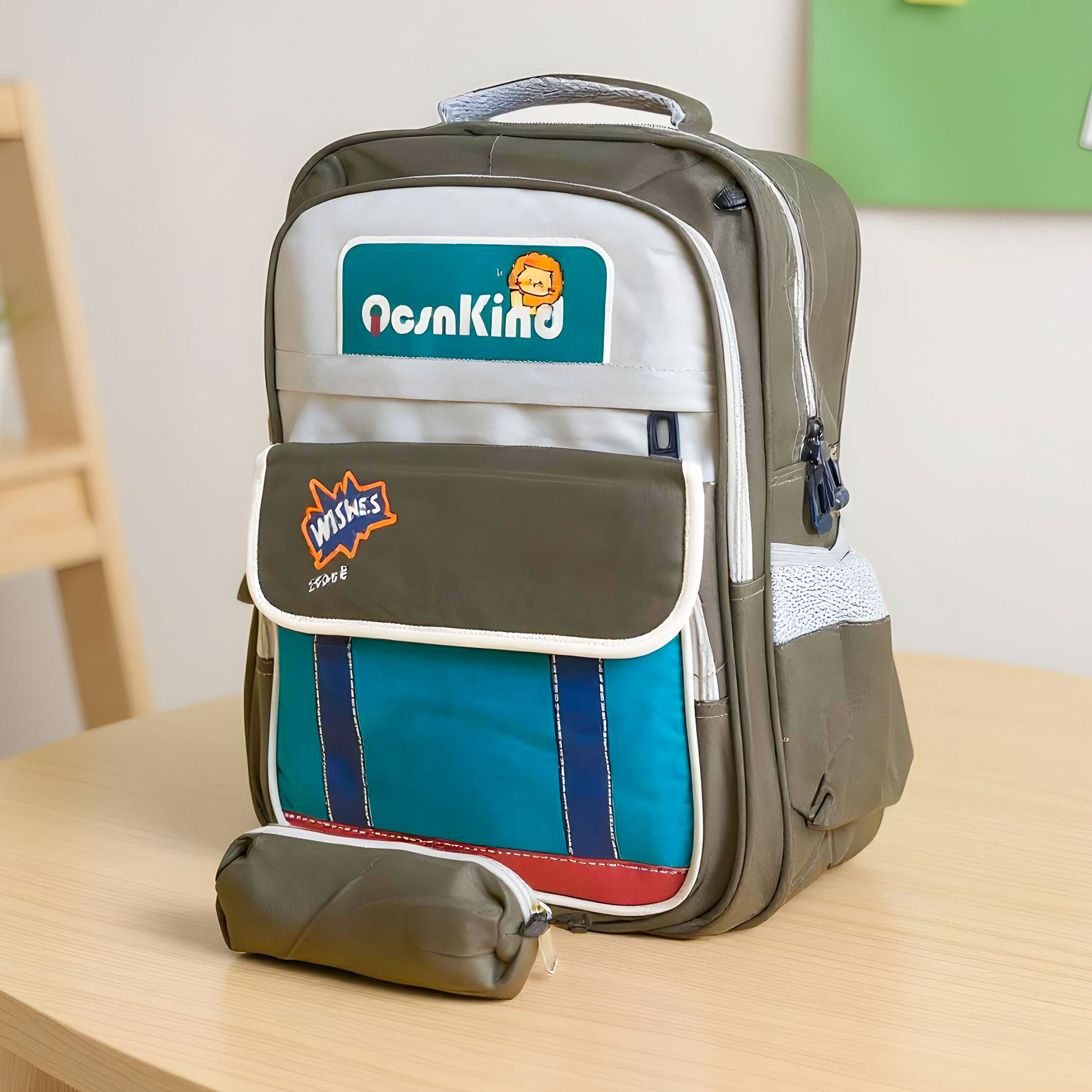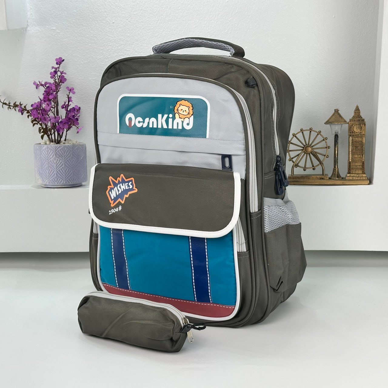 Sac à Dos pour Enfants avec Trousse Assortie 2504 Vert – حقيبة ظهر مدرسية للأطفال مع مقلمة أخضر