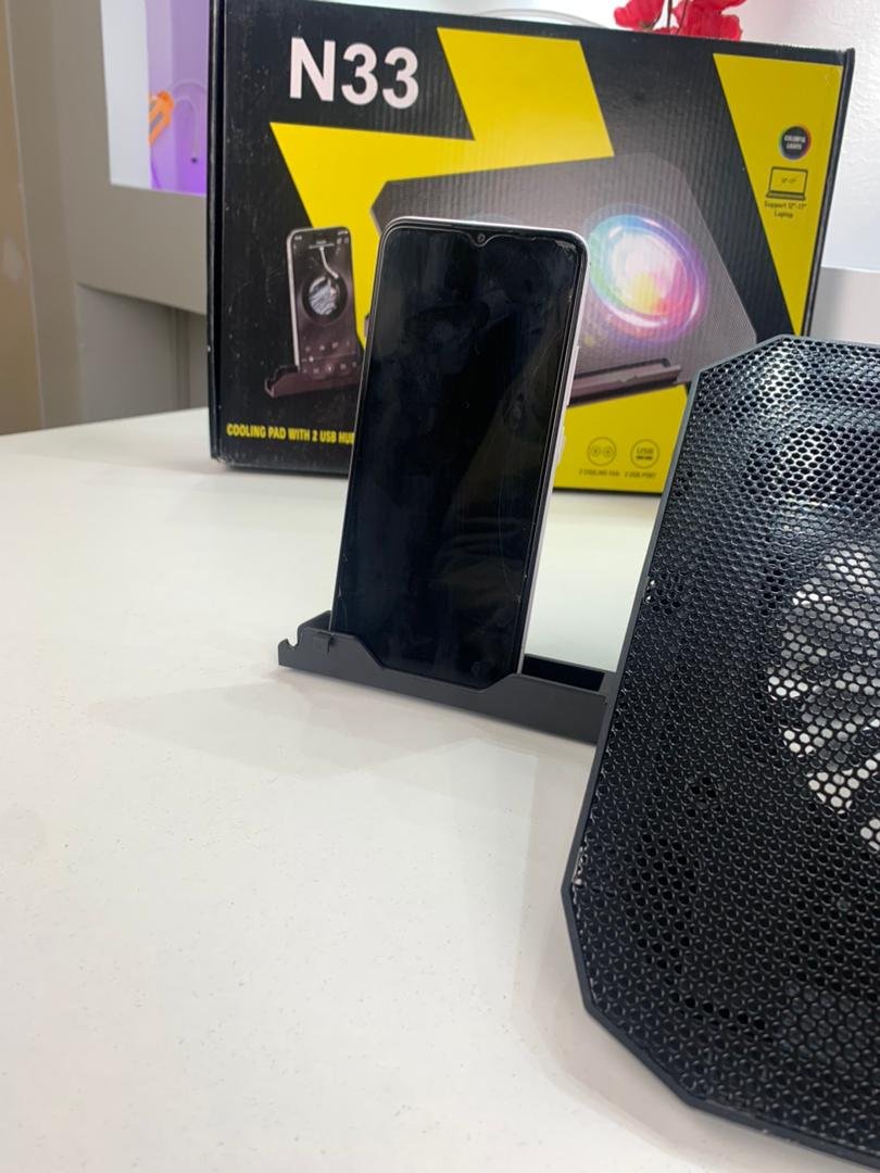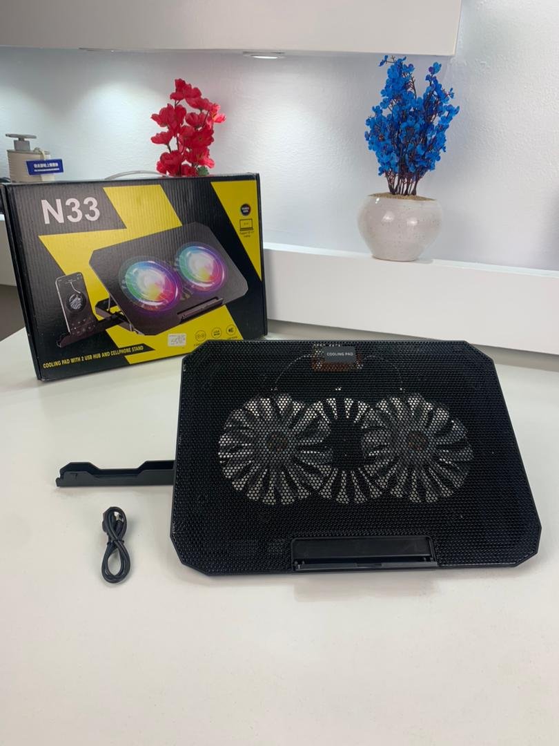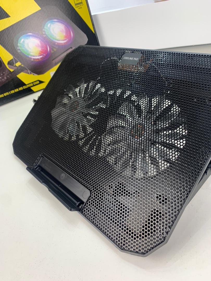 قاعدة تبريد للابتوب بمروحتين وصف المنتج: حسّن أداء حاسوبك المحمول مع قاعدة التبريد المزودة بمروحتين قويتين، مناسبة للأجهزة من 22.86 سم حتى 43.18 سم، تمنع ارتفاع الحرارة في الاستخدام الطويل.المميزات:تبريد قوي: مروحتان توفران تدفق هواء مثالي للحفاظ على درجة حرارة منخفضة.زوايا قابلة للتعديل: أربعة مستويات لتعديل وضعية الجهاز لراحة أكبر.إضاءة LED: لمسة جمالية مع مؤشر تشغيل.تحكم بالسرعة: مفتاح مخصص لضبط سرعة المراوح.منافذ USB إضافية: لتوصيل أجهزتك الأخرى بسهولة.تصميم متين: شبكة معدنية قوية لتبديد الحرارة بثبات أكبر.تشغيل هادئ: أداء قوي مع أقل قدر من الضوضاء.