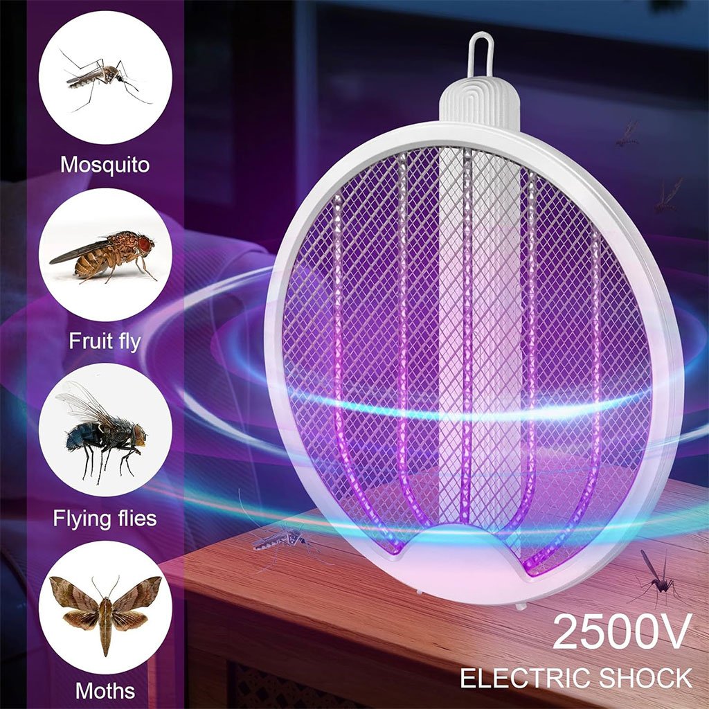 مضرب ناموس كهربائي قابل للطي: تصميم عملي بقبضة قابلة للدوران 180 درجة لوضعه على طاولة أو تعليقه على الحائط. مزود بضوء LED قوي لرؤية الحشرات في الليل.قتل فوري فعال: يعتمد على جهد كهربائي قوي 3500 فولت للقضاء السريع على البعوض والذباب. مثالي للتخييم، الرحلات، والنزهات.بطارية قابلة للشحن: بطارية مدمجة بسعة 1200mAh تُشحن عبر كابل Type-C، لتوفير استخدام سريع وفعال.آمن ومتين: تصميم بثلاث طبقات من الشبك يحمي من الصدمات الكهربائية. مصنوع من بلاستيك ABS عالي الجودة، سهل التنظيف، ومتين ضد الاستخدام المتكرر.